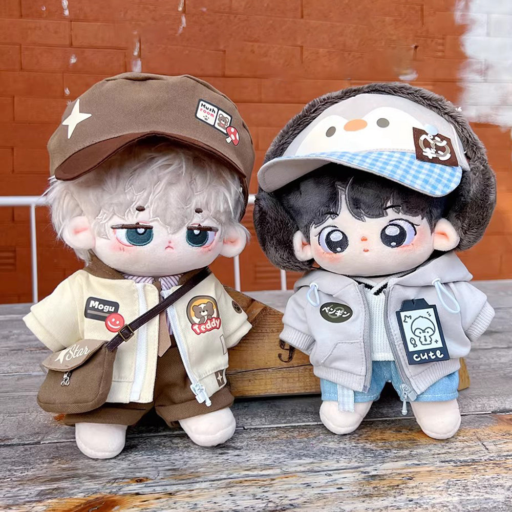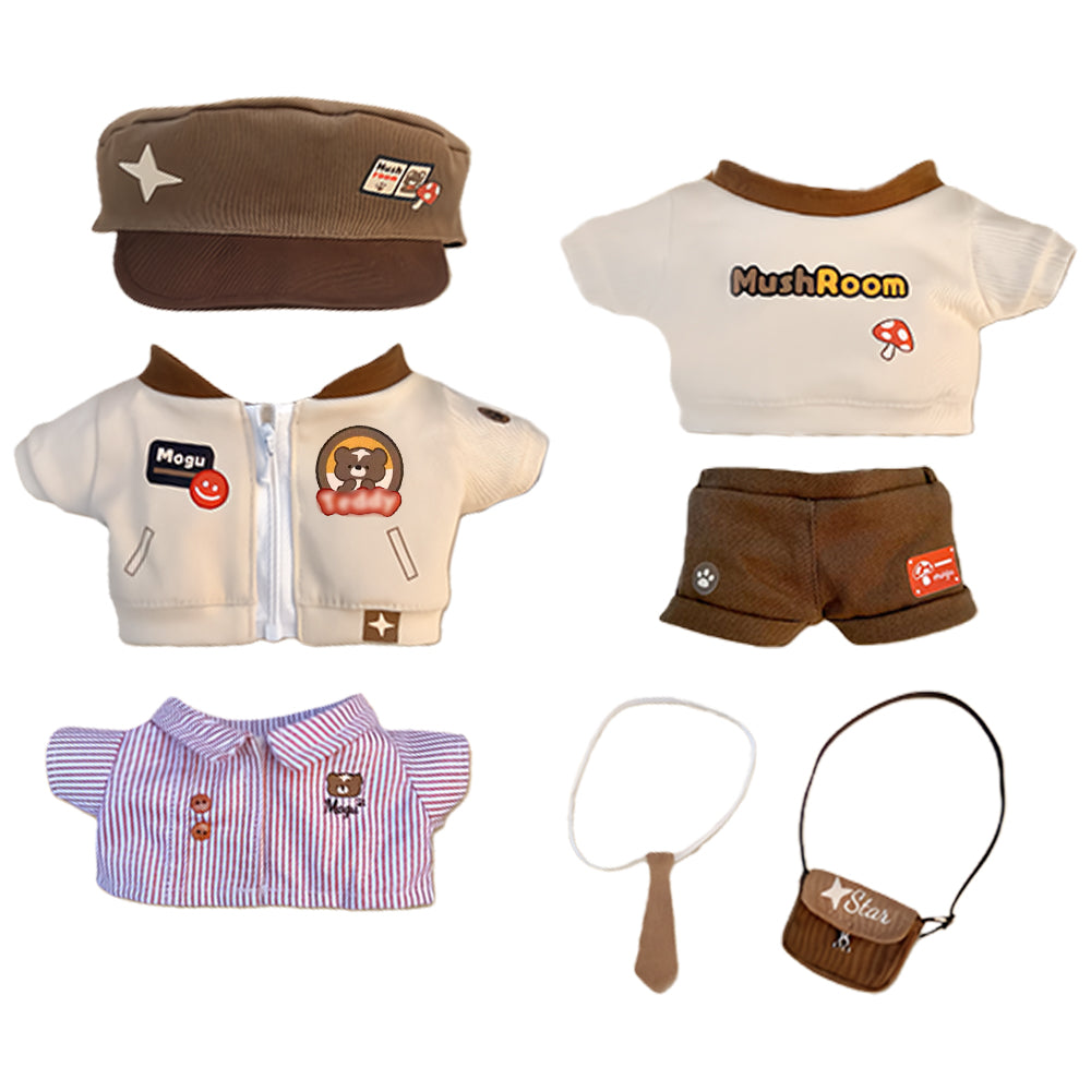 niannyyhouse 15cm 20cm Plush Doll Clothes Cool Leopard Print Suit Loose Coat T-shirt Pants Headwear Collar Shoes Soft Stuffed Plush Toy Dress Up