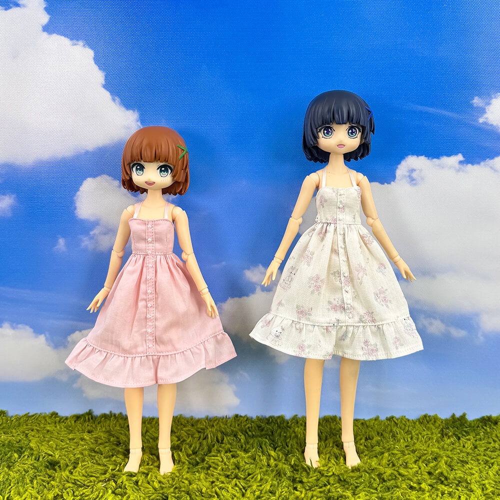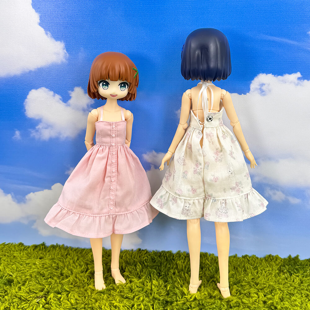 The dress came fairly fast, around two weeks? And the quality of it was good, solid fabric. My plushie is wearing it and being cute.
