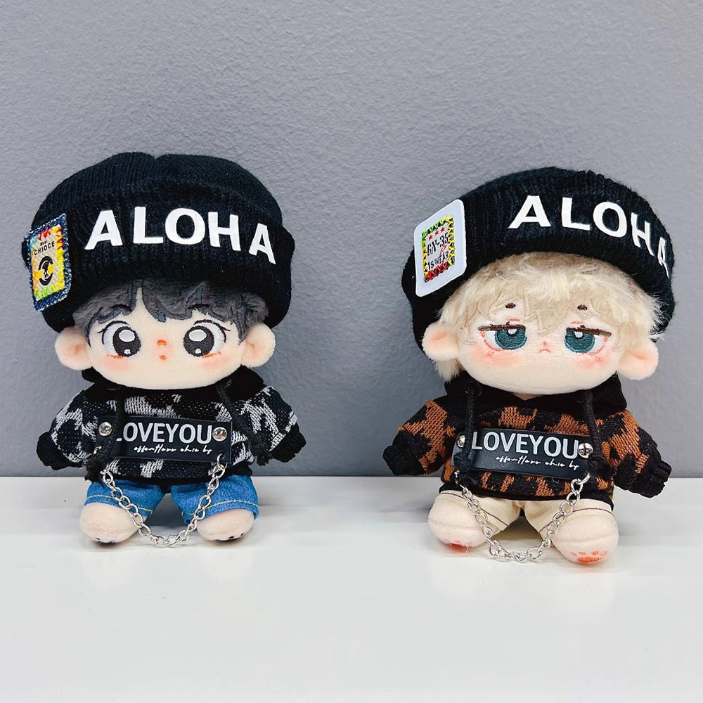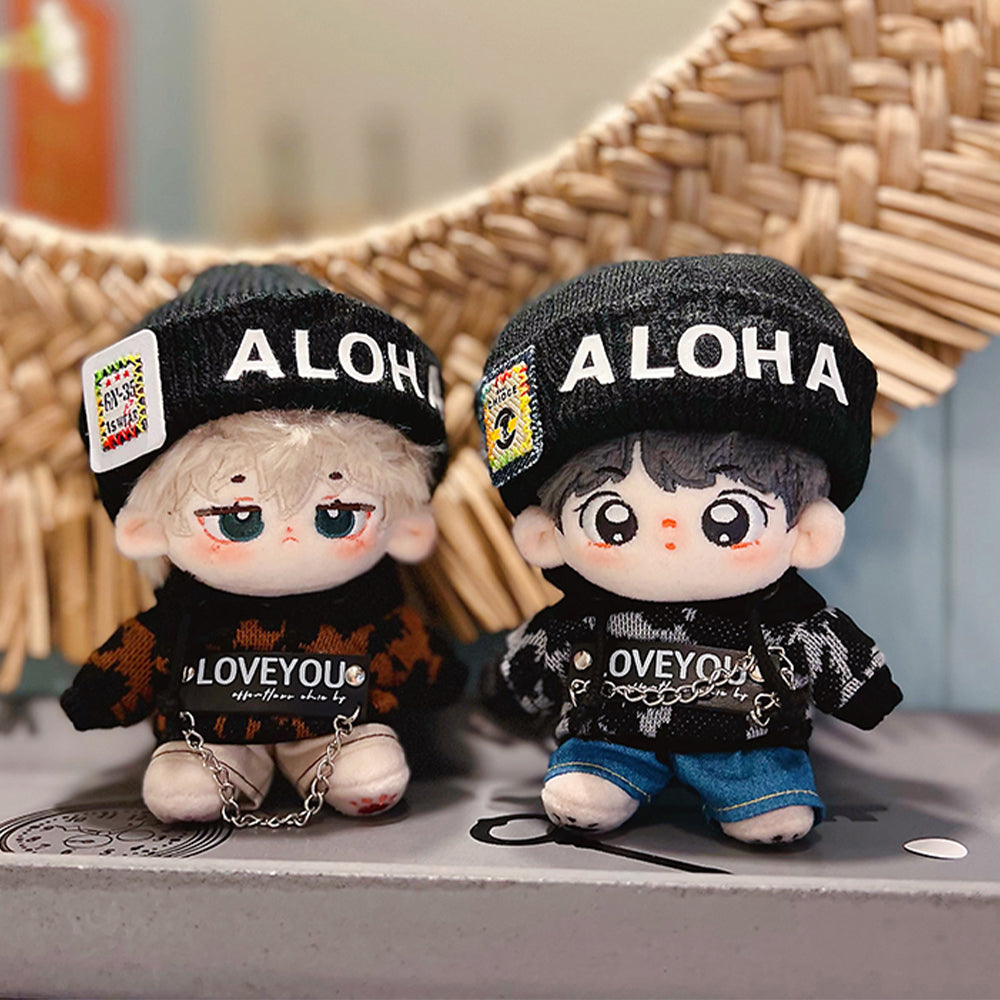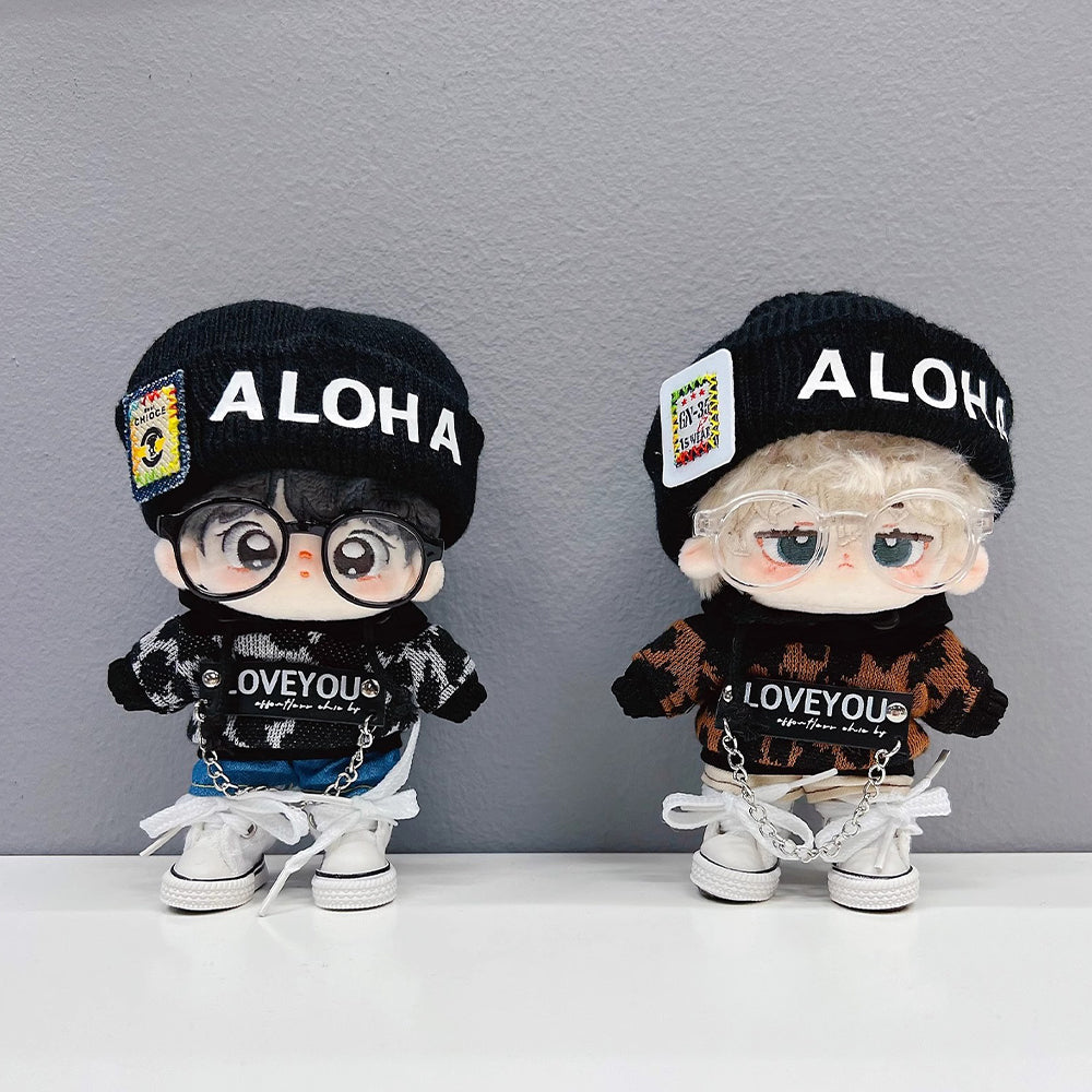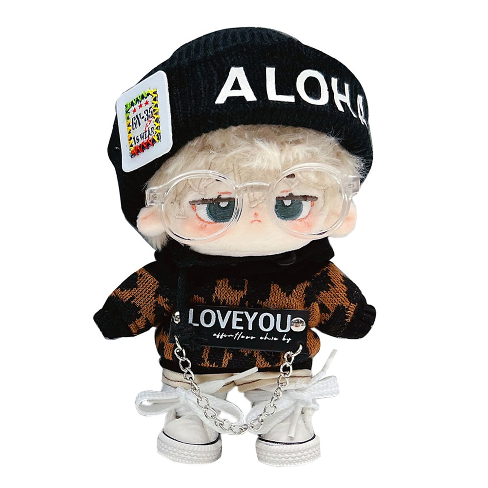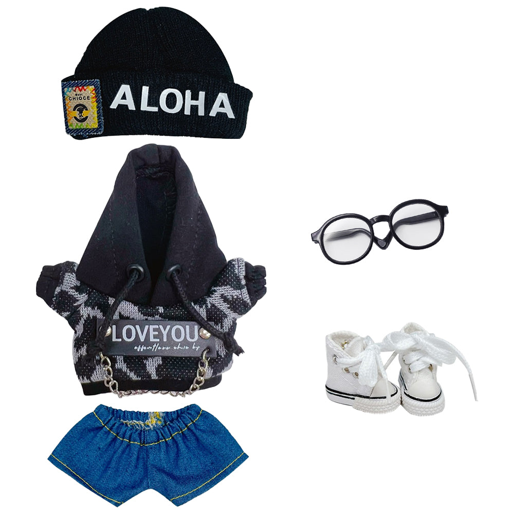 niannyyhouse 10cm Plush Doll Clothes Leopard Print Set Hat Hoodie Jeans Canvas Shoes Glasses Doll Accessories