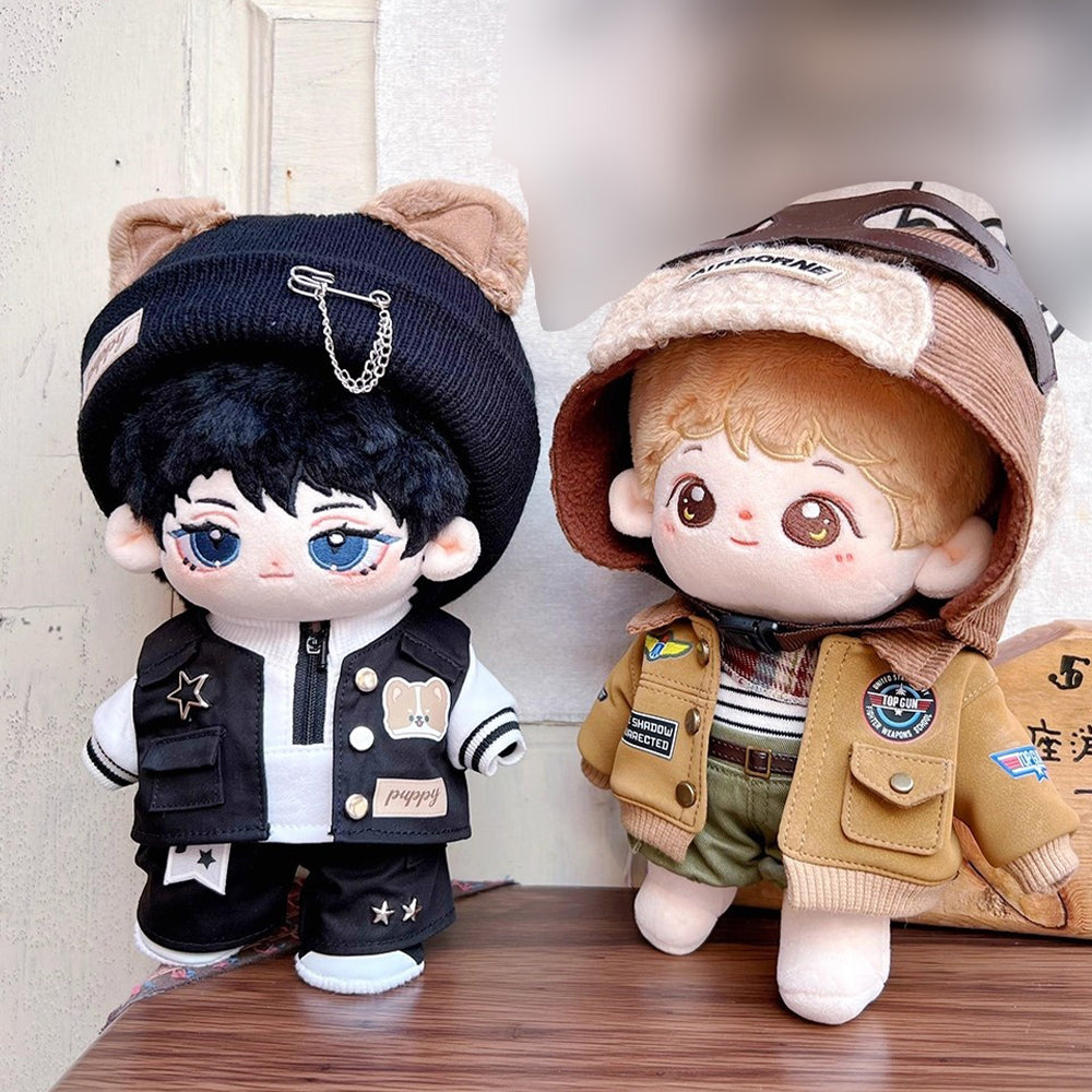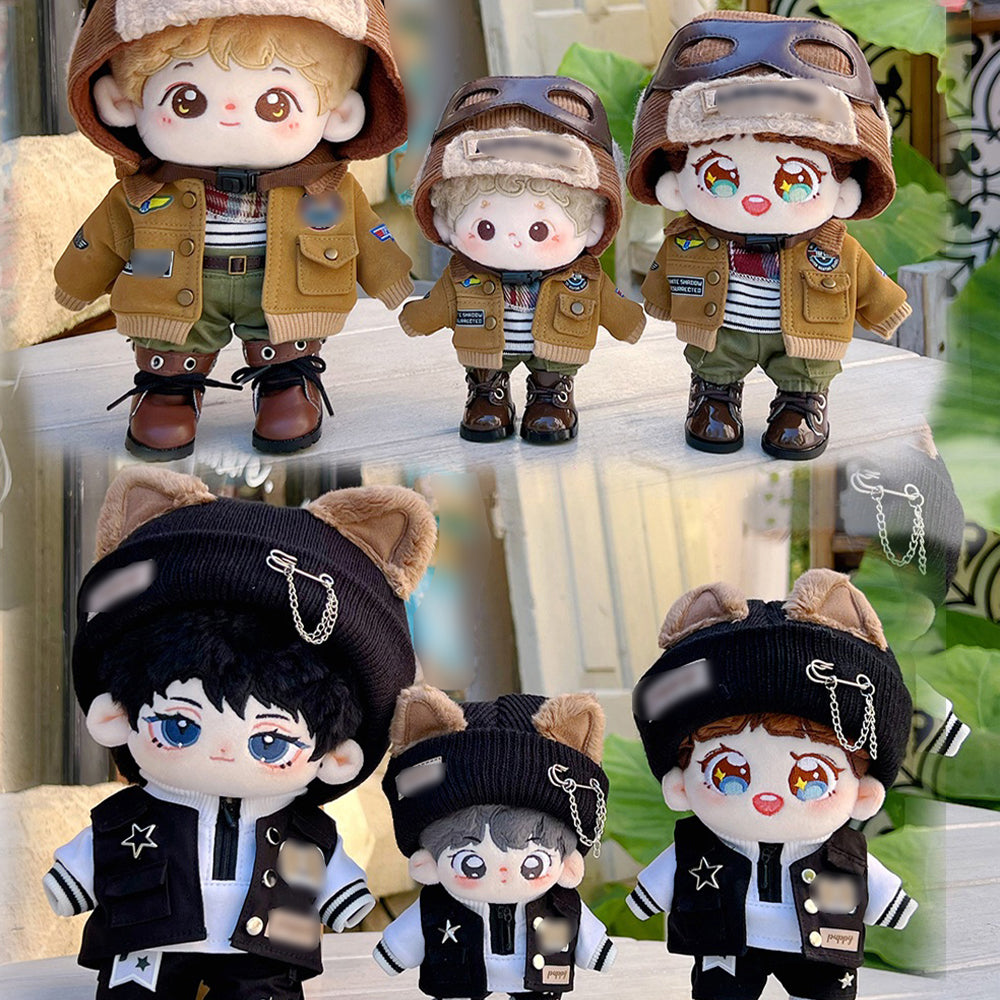 niannyyhouse 15cm 20cm Plush Doll Clothes Night Walker Set Black Hoodie T-shirt Pants Fisherman's Hat Glasses Shoes Soft Stuffed Plush Toy Dress Up