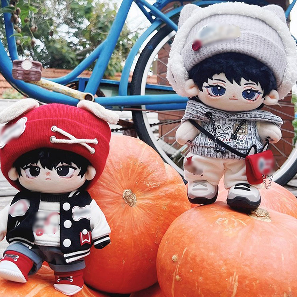 niannyyhouse 20cm Plush Doll Clothes Sweatshirt Pocket Pants Leather Shoes 8in Doll Outfit Dress Up