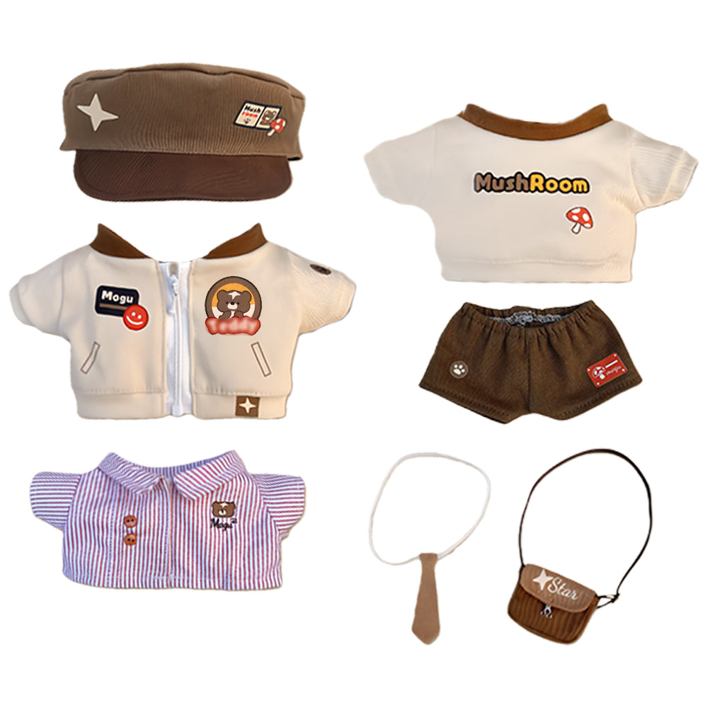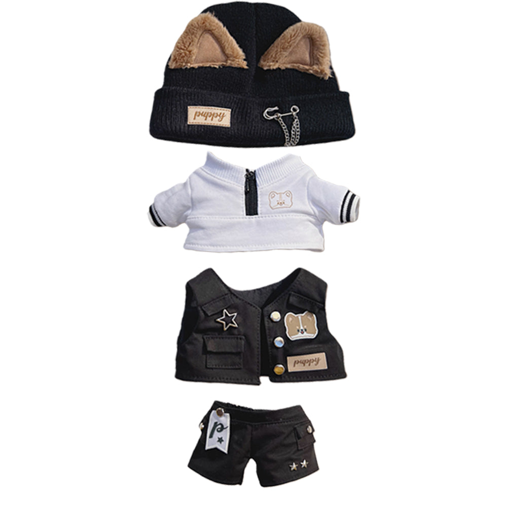 niannyyhouse 15cm 20cm Plush Doll Clothes Cool Leopard Print Suit Loose Coat T-shirt Pants Headwear Collar Shoes Soft Stuffed Plush Toy Dress Up
