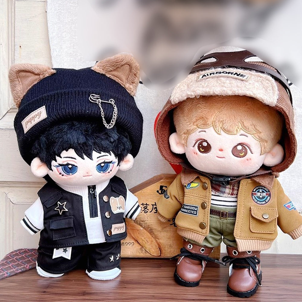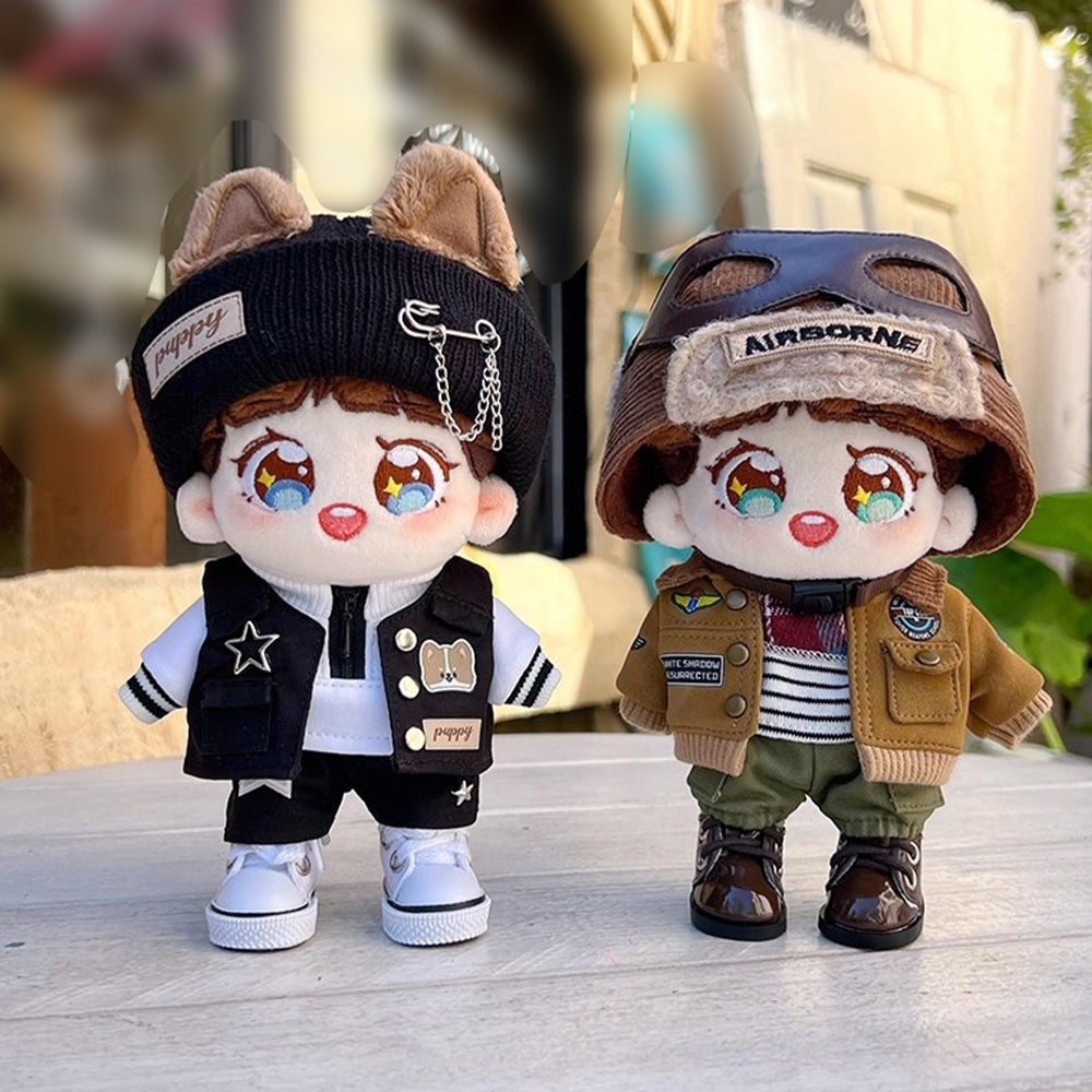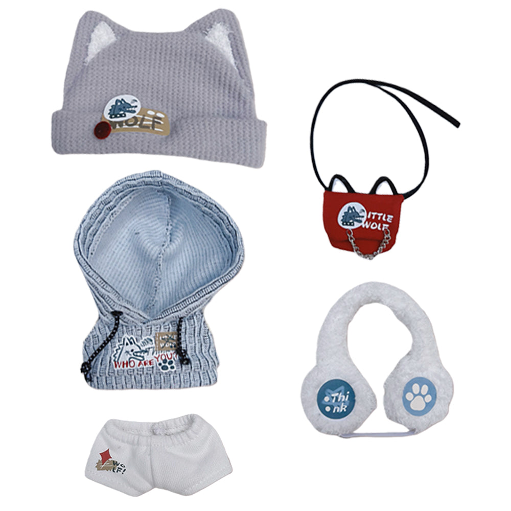 niannyyhouse 15cm 20cm Plush Doll Clothes Night Walker Set Black Hoodie T-shirt Pants Fisherman's Hat Glasses Shoes Soft Stuffed Plush Toy Dress Up