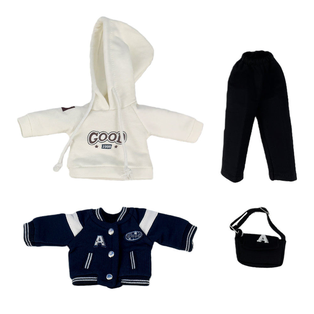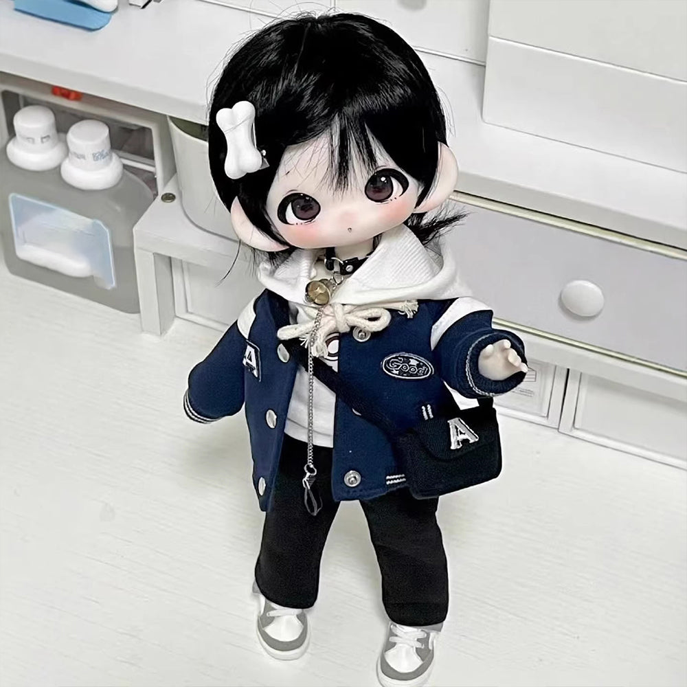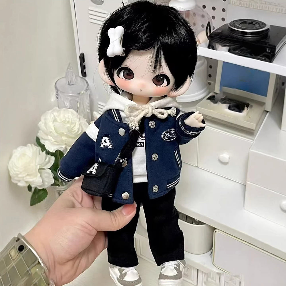 niannyyhouse 10cm Plush Doll Clothes Coat White Shirt Pants Tie Blue Suit 4in Doll Dressup