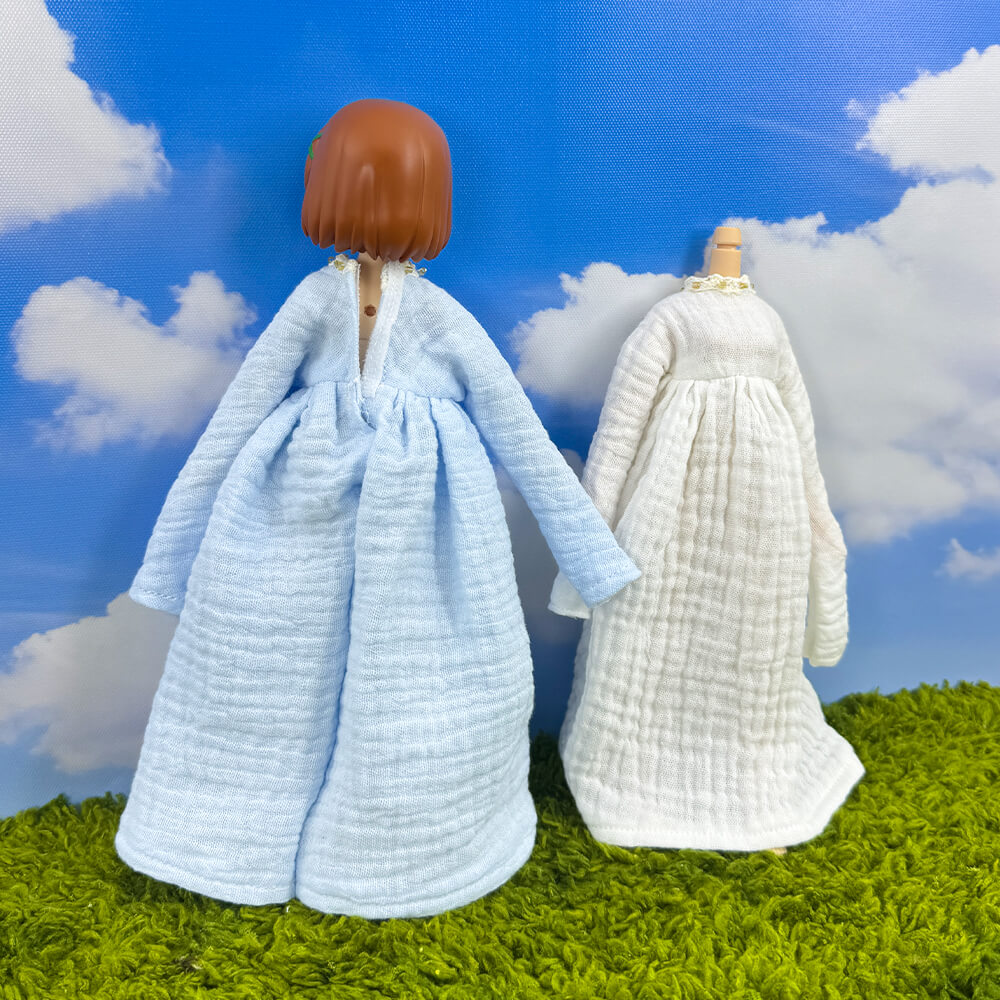 The dress came fairly fast, around two weeks? And the quality of it was good, solid fabric. My plushie is wearing it and being cute.