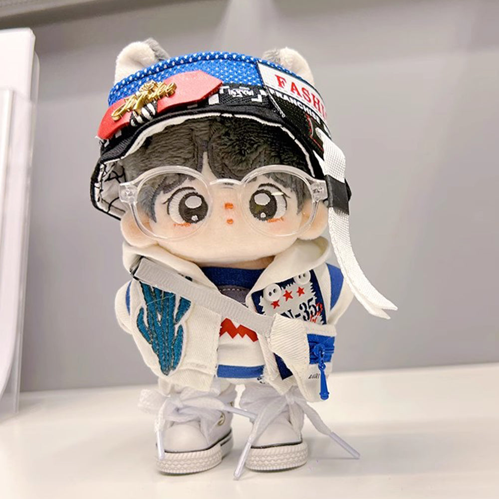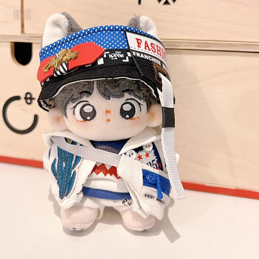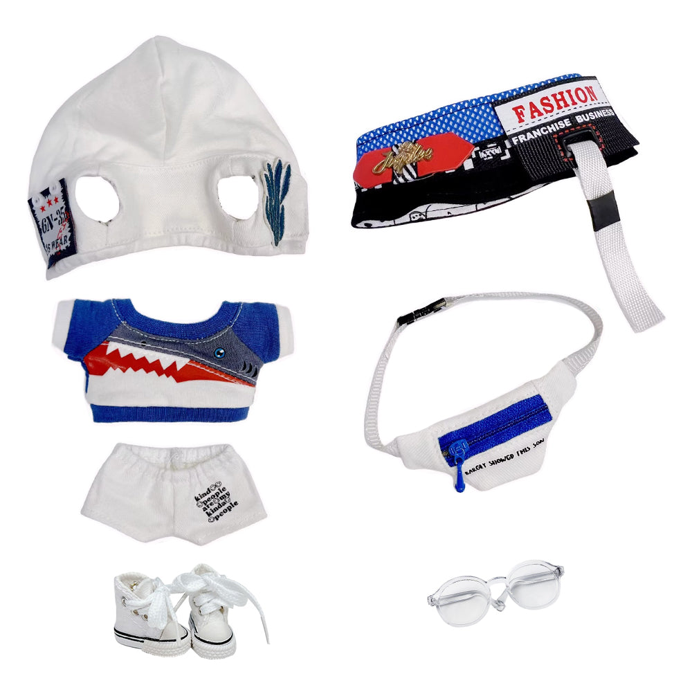 niannyyhouse 10cm Plush Doll Clothes Empty Top Hat Coat T-shirt Pants Backpacks Glasses Canvas Shoes Shark Set Doll Accessories Dress Up