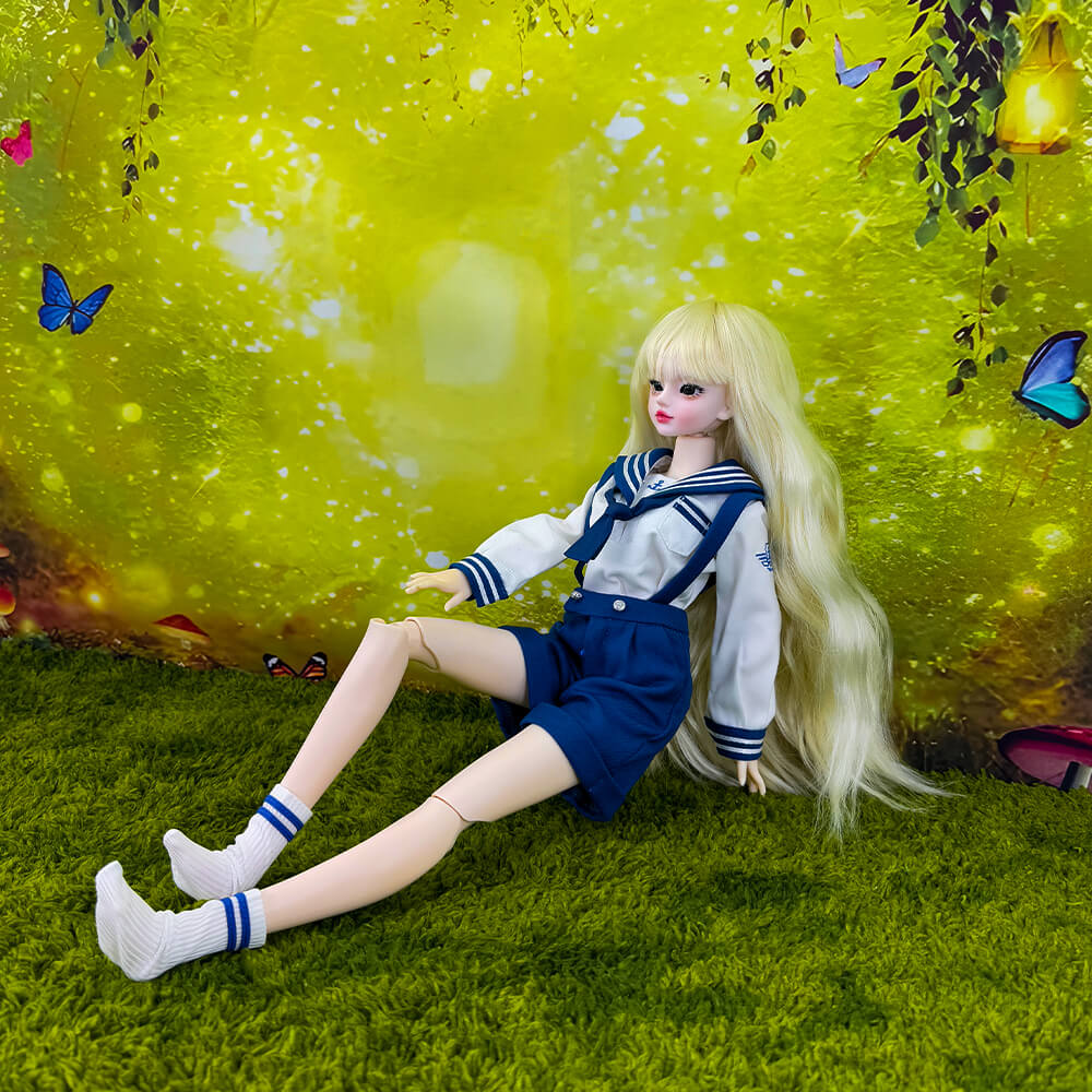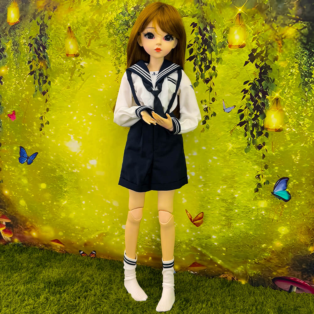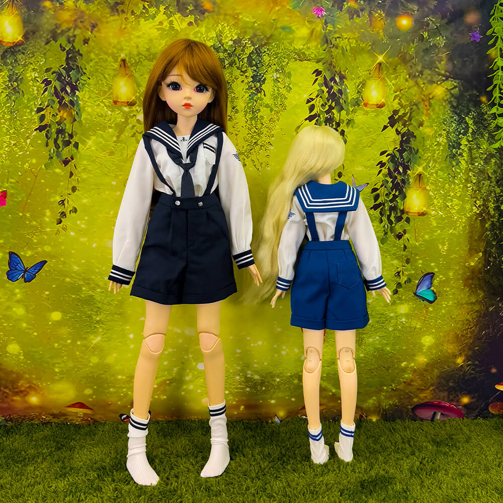 Classic Sailor Design: Features traditional nautical-inspired styling with blue color scheme, perfect for creating school or casual looks for your doll