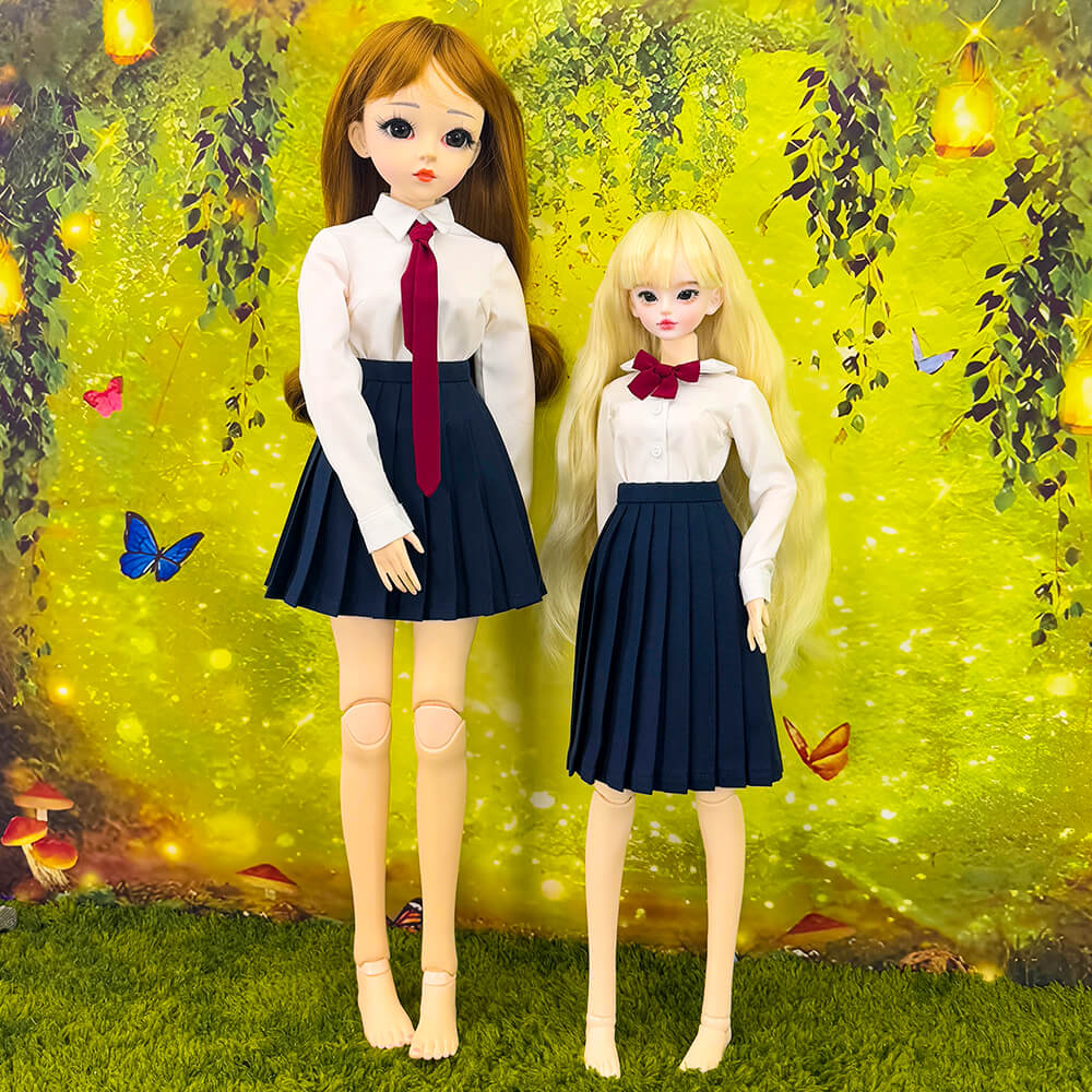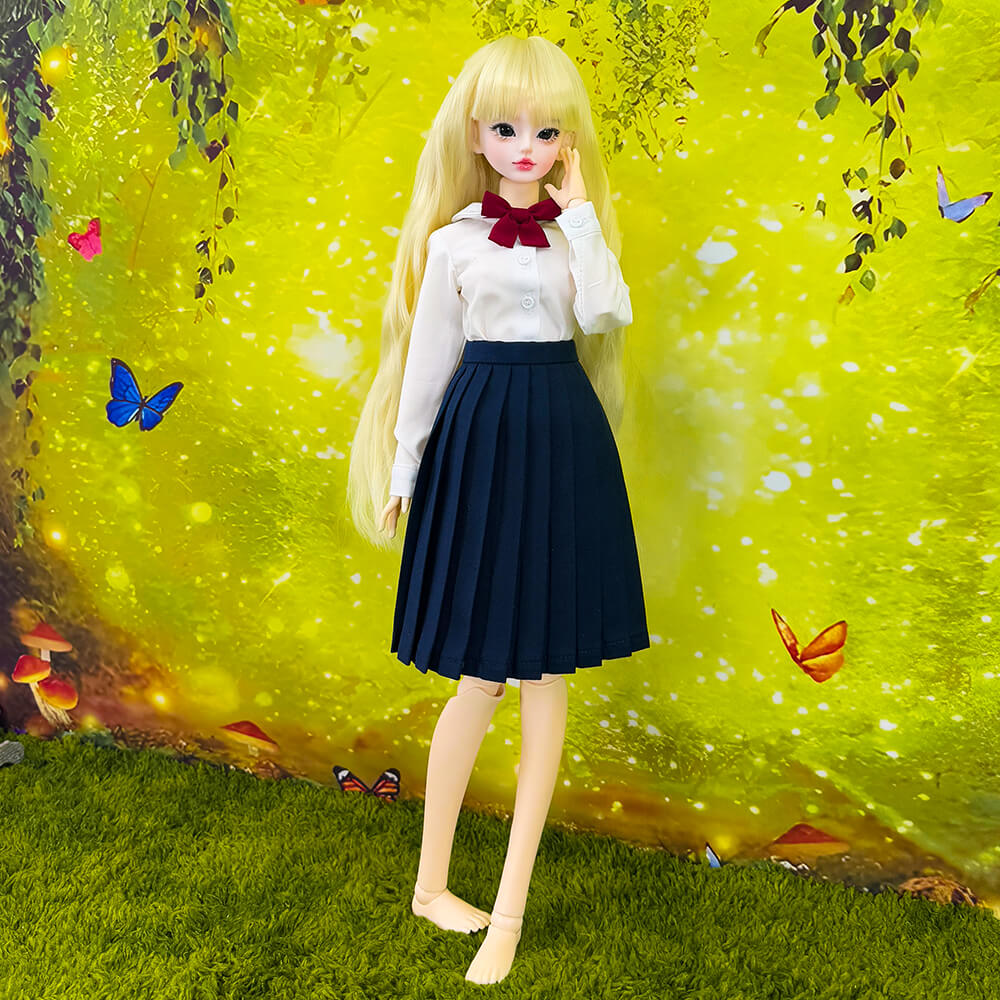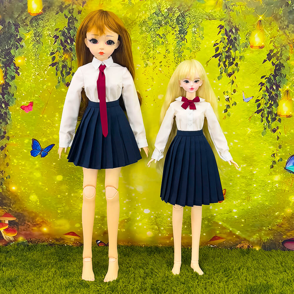 CLASSIC JK UNIFORM STYLE: Features an authentic Japanese school uniform design with a crisp white shirt and dark blue pleated skirt for a timeless look. QUALITY CONSTRUCTION: Carefully crafted doll clothing with attention to detail, including proper sizing and finishing for BJD accessories. PERFECT DOLL ACCESSORY: Ideal for doll collectors, photographers, and enthusiasts looking to expand their BJD wardrobe with classic uniform styling.