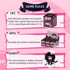 Blind Box: Blind boxes are completely random, and we do not accept requests for specific styles. The probability of opening each ordinary doll is 1/6. This series contains 1 hidden doll, and the probability of winning is 1/72. 1PC---(Each blind box contains one doll. Before opening, no one knows which model is in the box-including ourselves.)6PCs---(The whole set contains 6 blind boxes, no duplication. If your blind box contains duplicate dolls, please return the duplicate model and we will send the missing doll.)