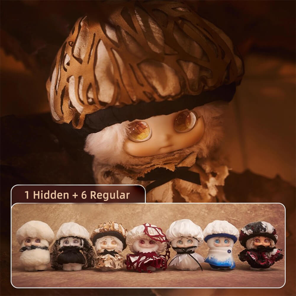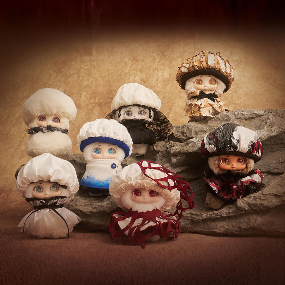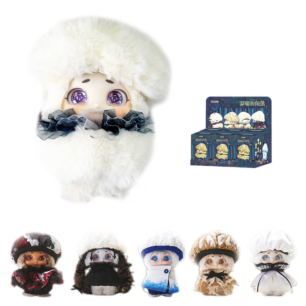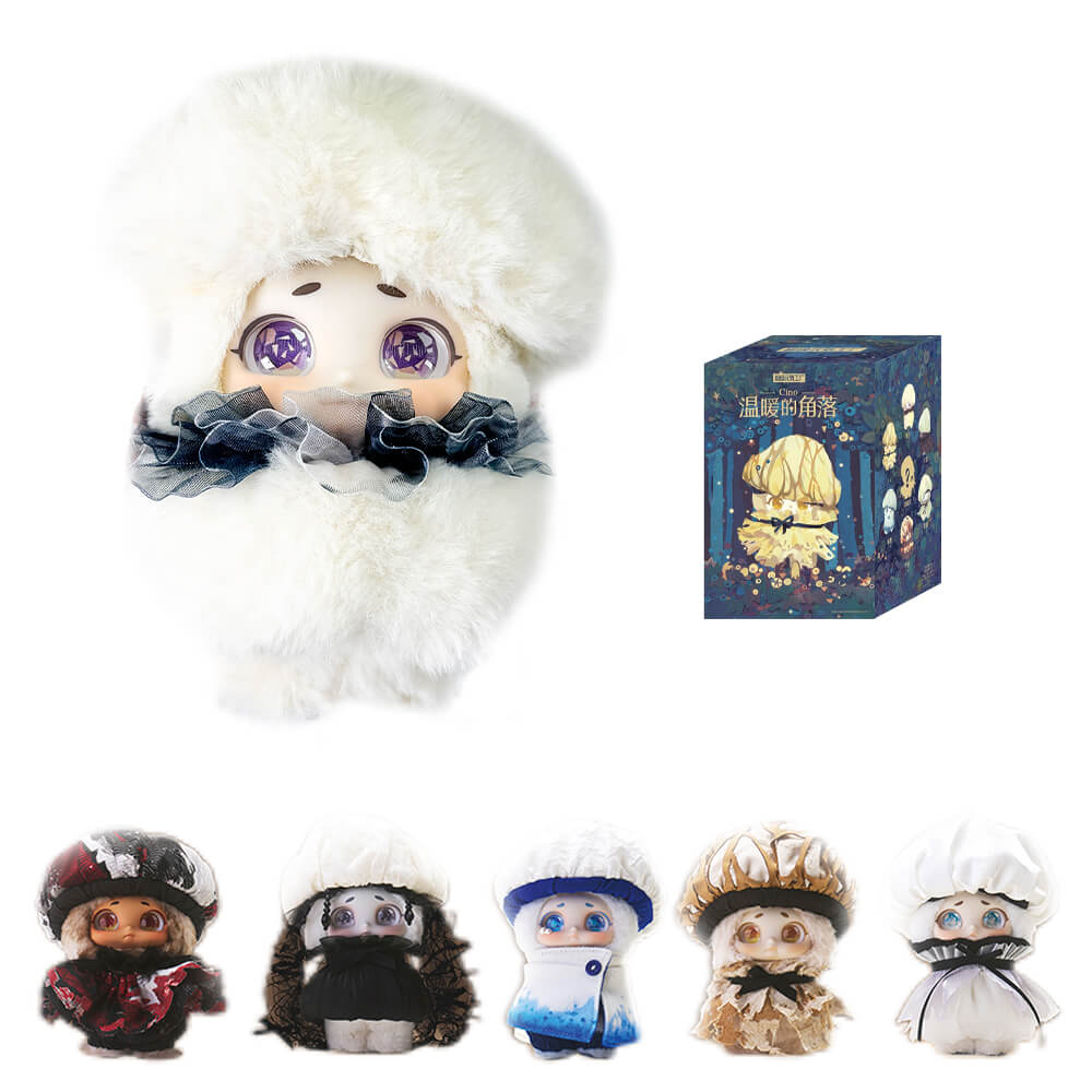 Interactive Design: Inspired by mushrooms, the series features adorable character designs inspired by warm corners. The face and eyes are detachable and interchangeable with other dolls in the same series. The character's clothes can also be removed, allowing you to create new outfits.