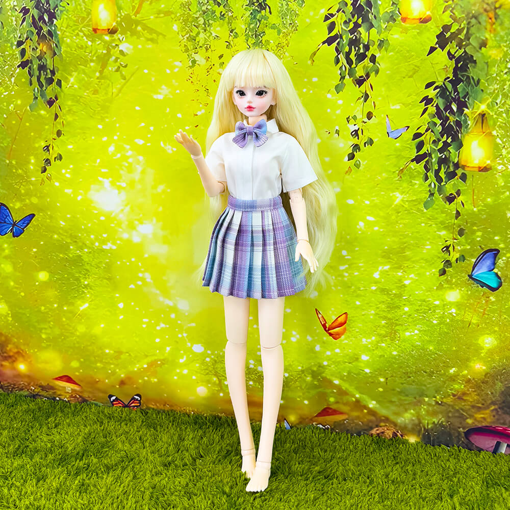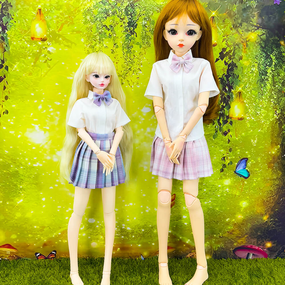 STYLE DETAILS: Features Japanese school uniform (JK) inspired design with classic plaid pattern and feminine bow accent.VERSATILITY: Perfect for dress-up play, doll photography, collection display, or as a special gift for BJD enthusiasts.QUALITY CRAFTSMANSHIP: Carefully tailored clothing set made specifically for ball jointed dolls with attention to detail and fit.