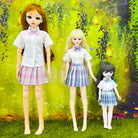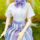 niannyyhouse BJD Doll Uniform Set, White Shirt with Plaid Skirt and Bow Tie, 1/3 1/4 1/6 Scale Ball Jointed Doll Clothes, Dress Up Gift