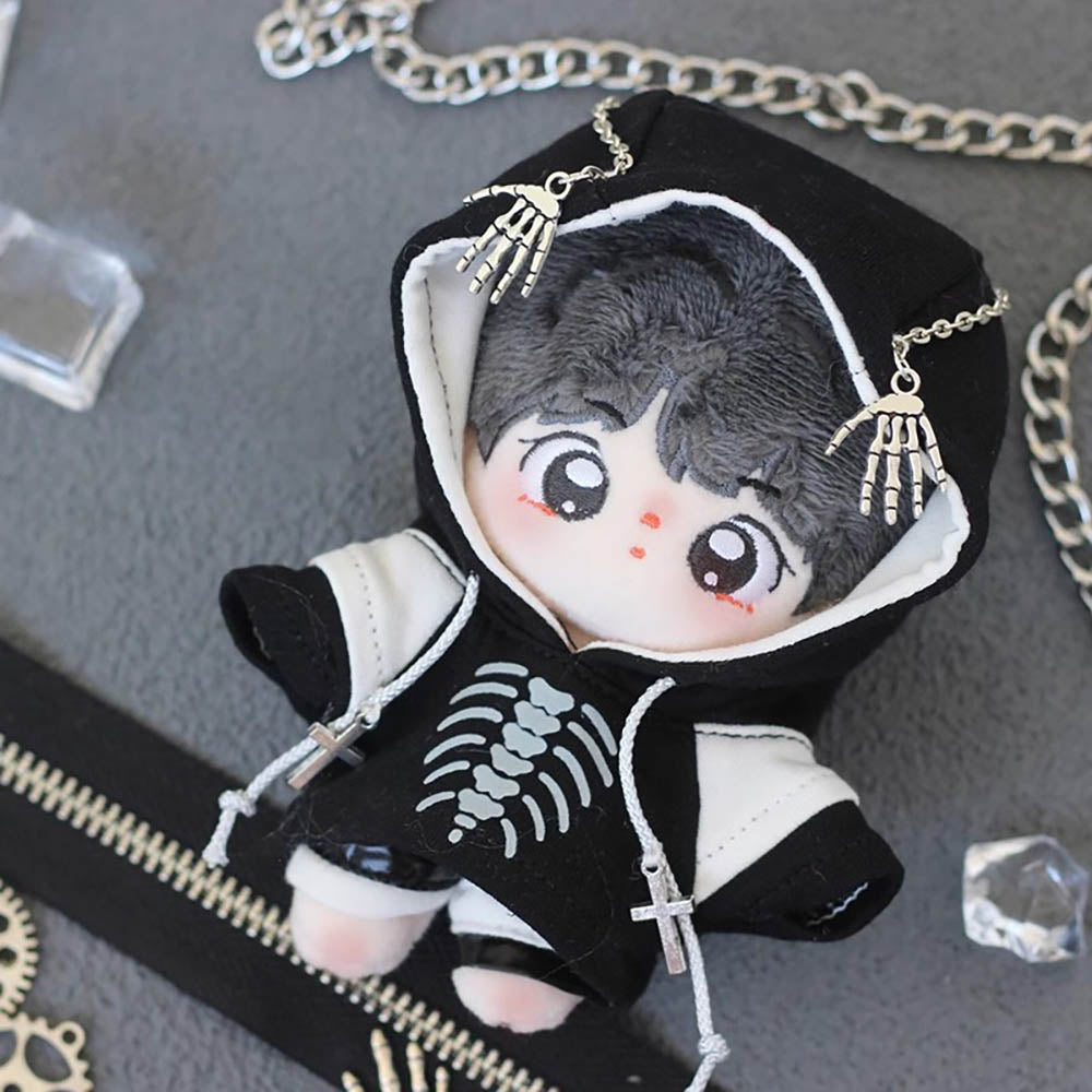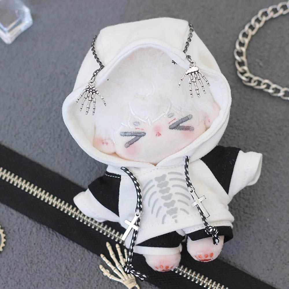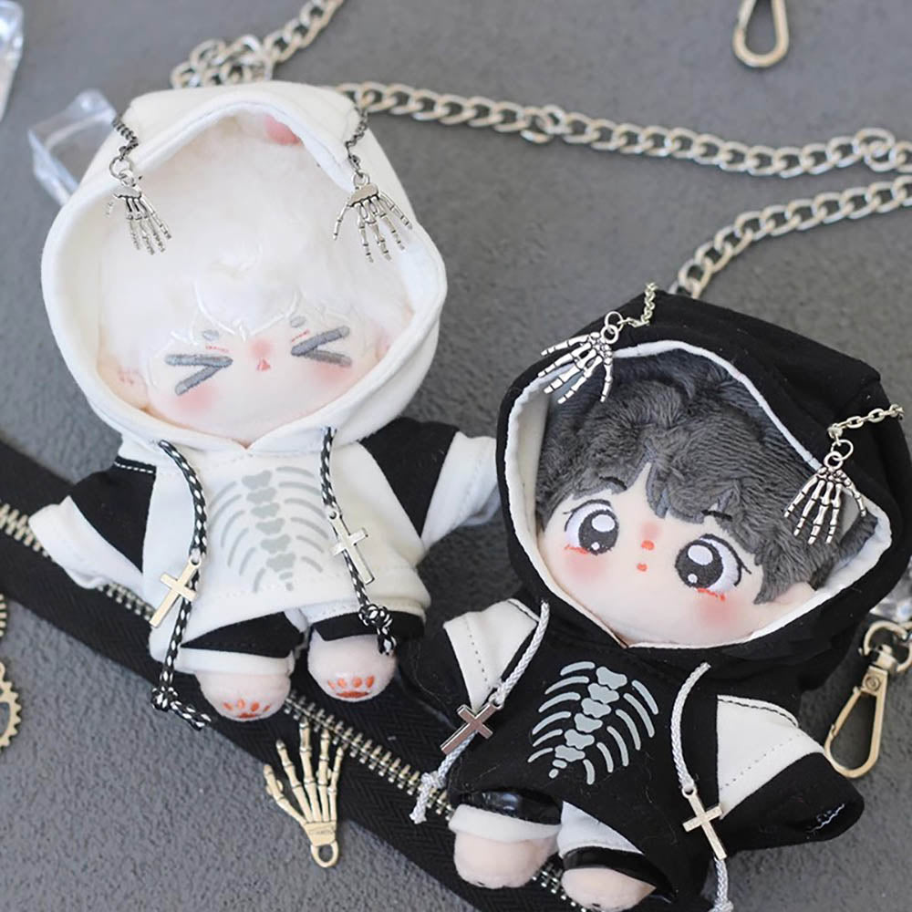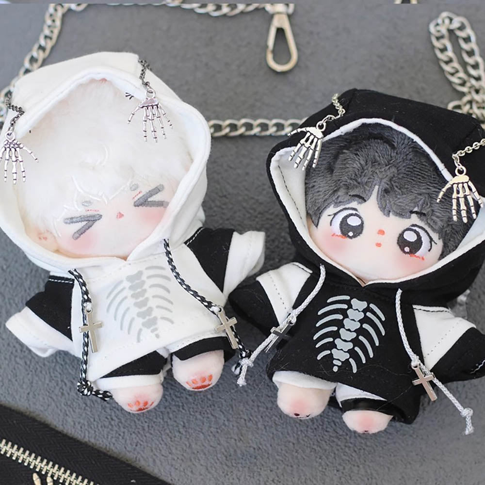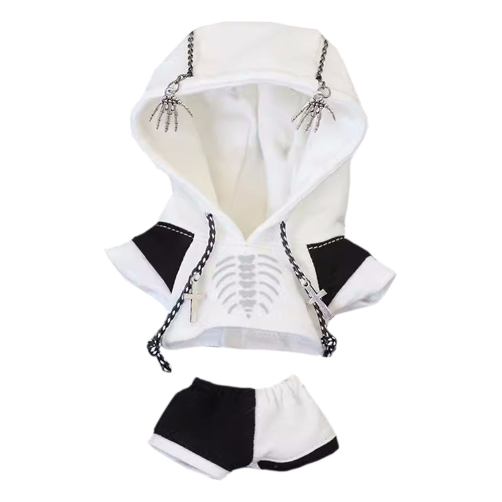 niannyyhouse 10cm Plush Doll Clothes Hoodie Color Blocked Pants Black and White Skeleton Outfit Doll Accessories