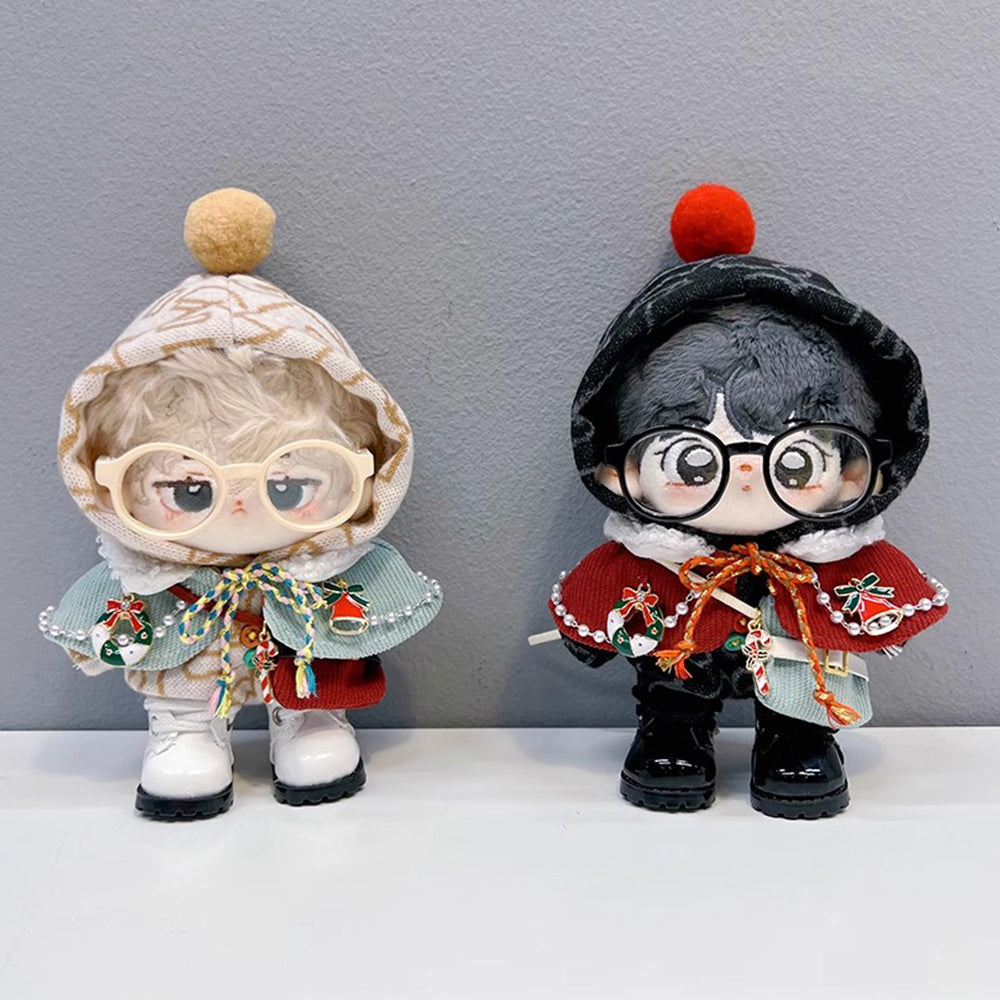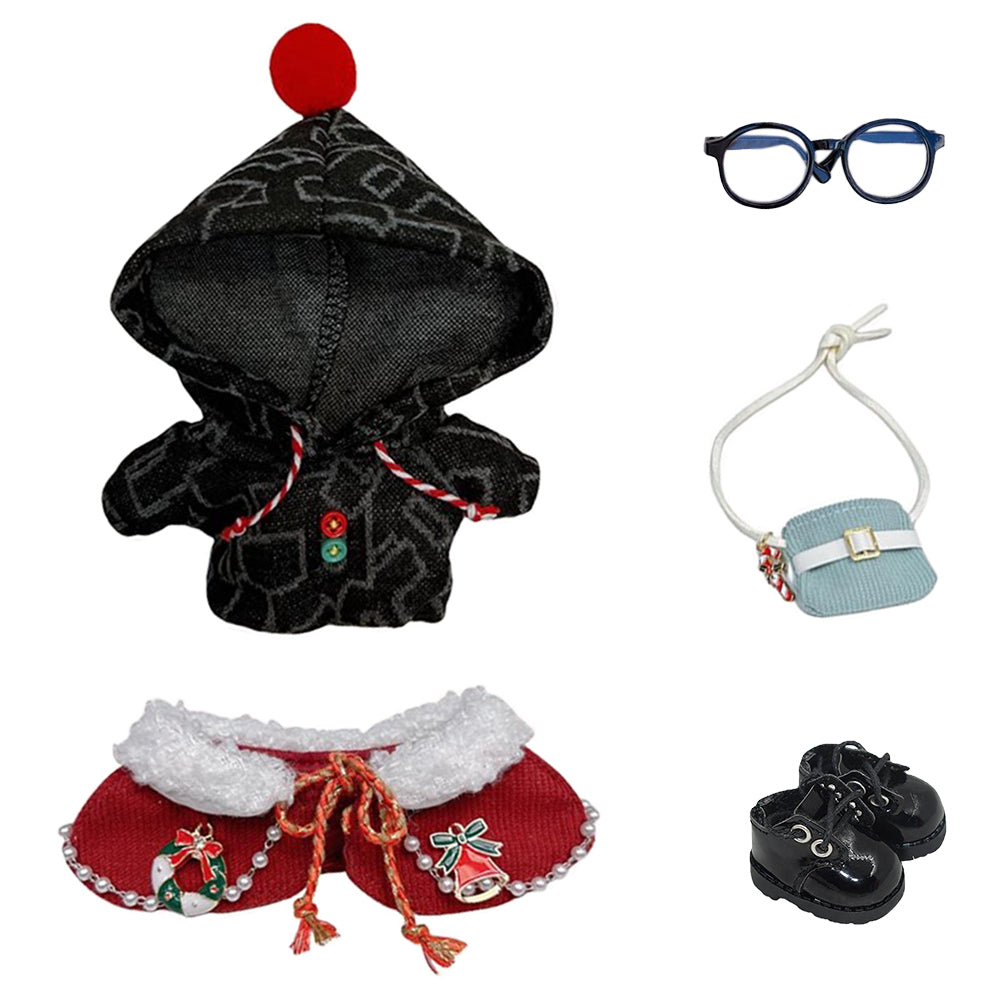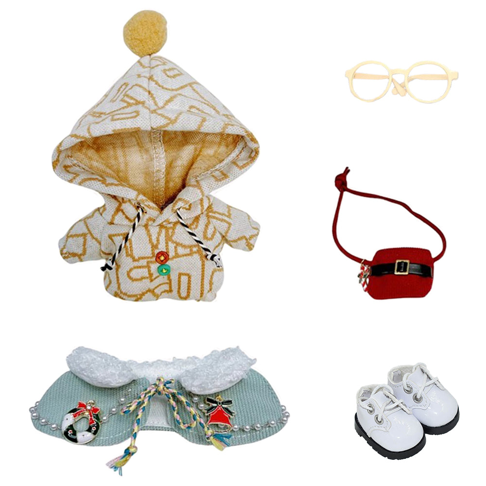 niannyyhouse 10cm Plush Doll Clothes Poncho Printed Hoodie Backpack Glasses Leather Shoes Shawls Outfit Doll Accessories Dress Up