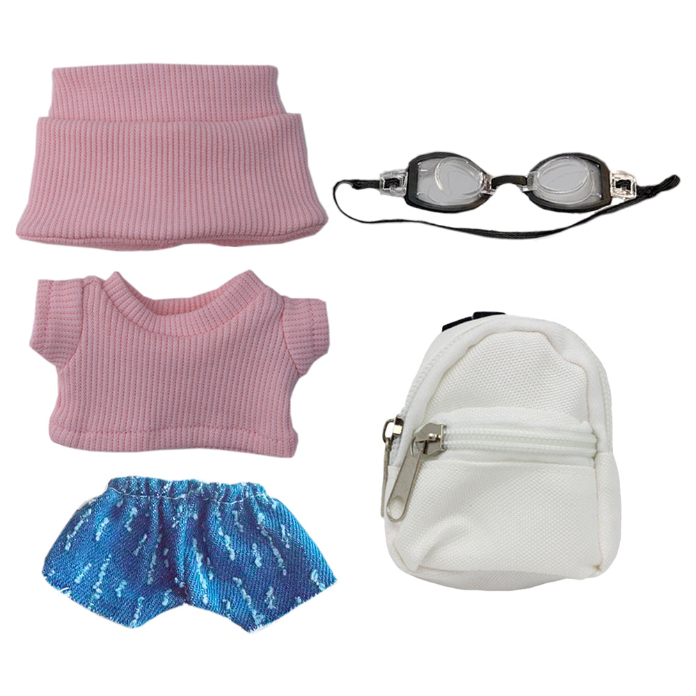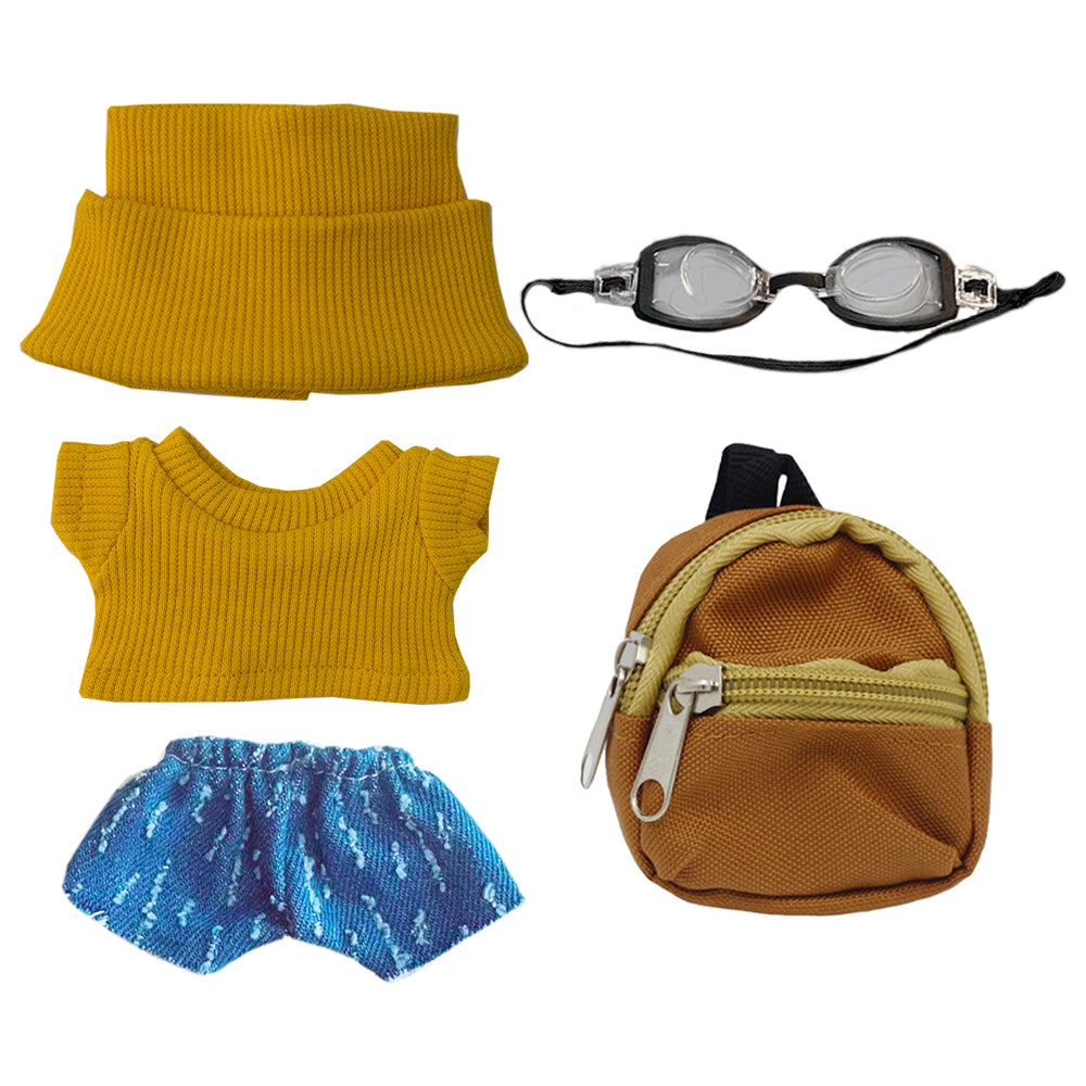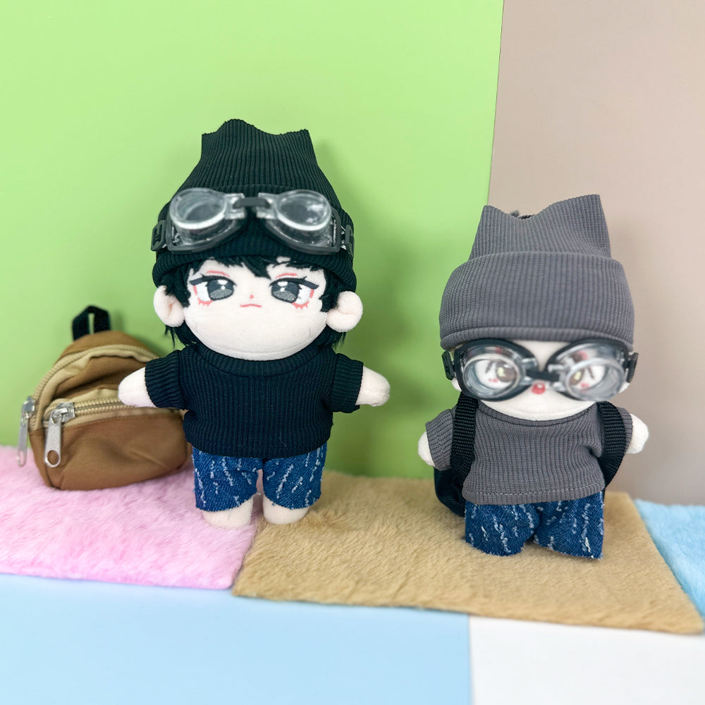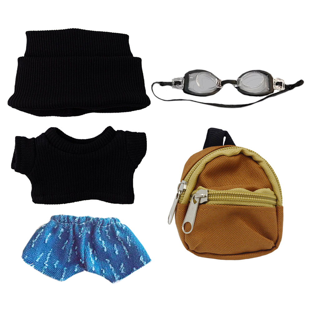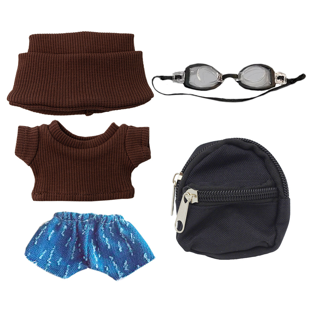Doll Clothes and Accessories Set, Hat, Sweater, Jeans, Glasses, Backpack for 15-17cm Plush Dolls