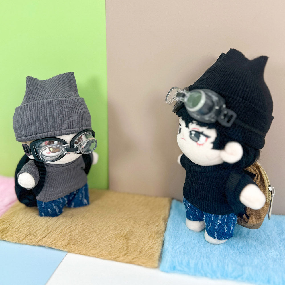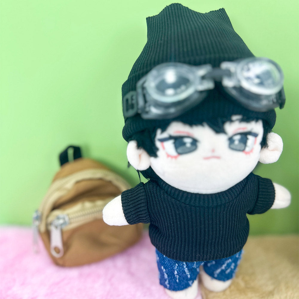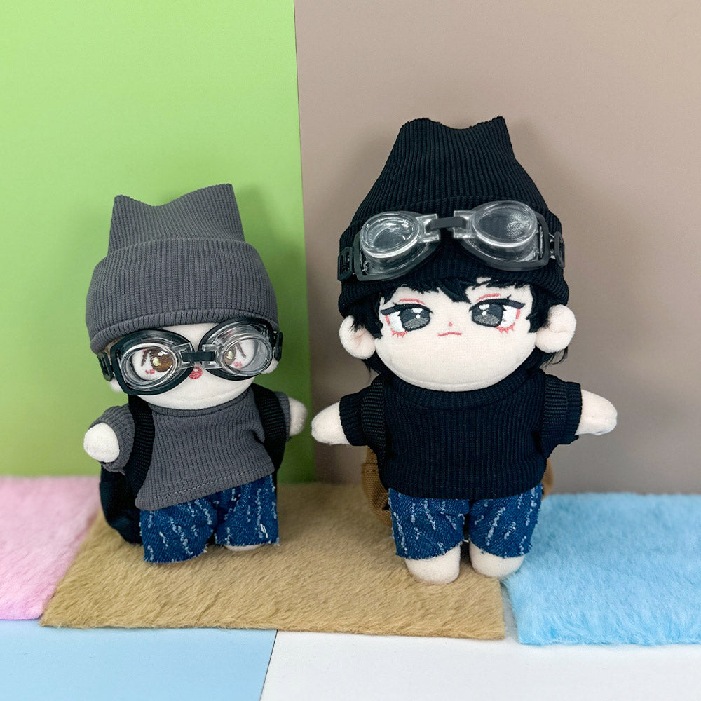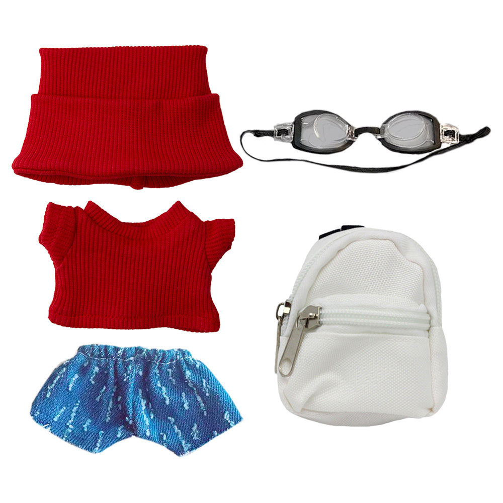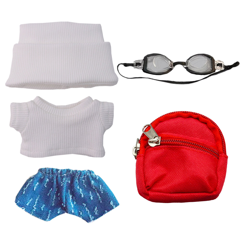 Doll Clothes and Accessories Set, Hat, Sweater, Jeans, Glasses, Backpack for 15-17cm Plush Dolls