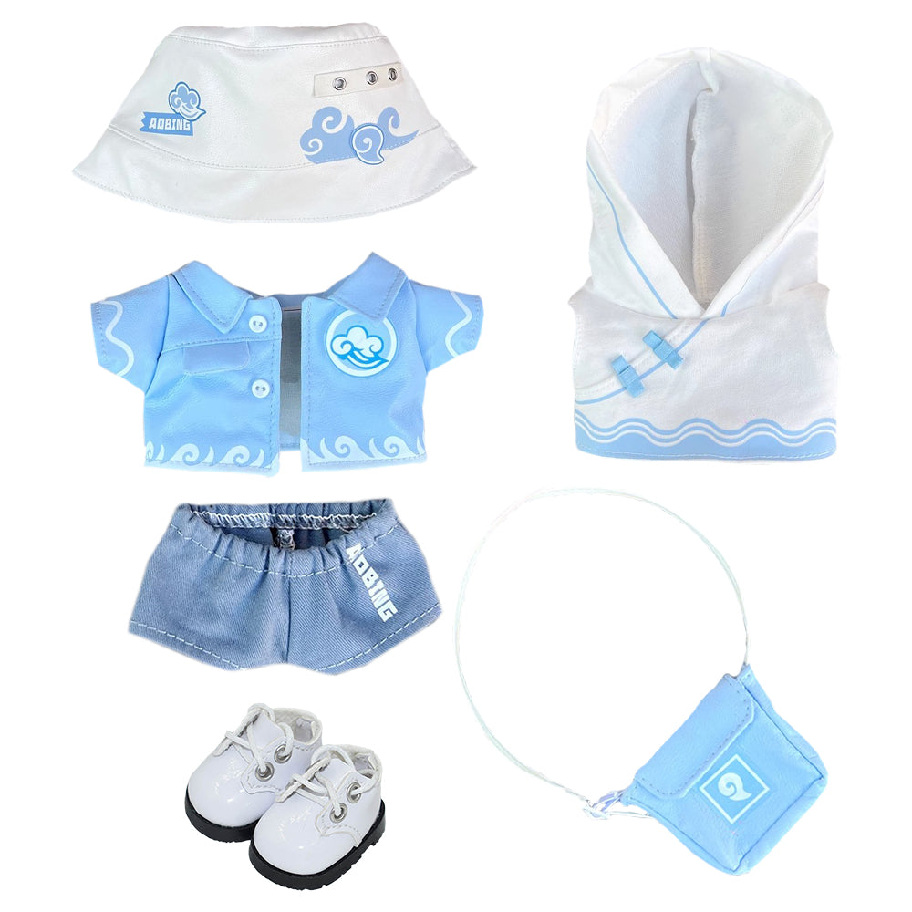 1. Package Included: Hat+Coat+Pants+Hoodie+Bag+Shoes 6-Piece Set(The doll can stand when wearing shoes)