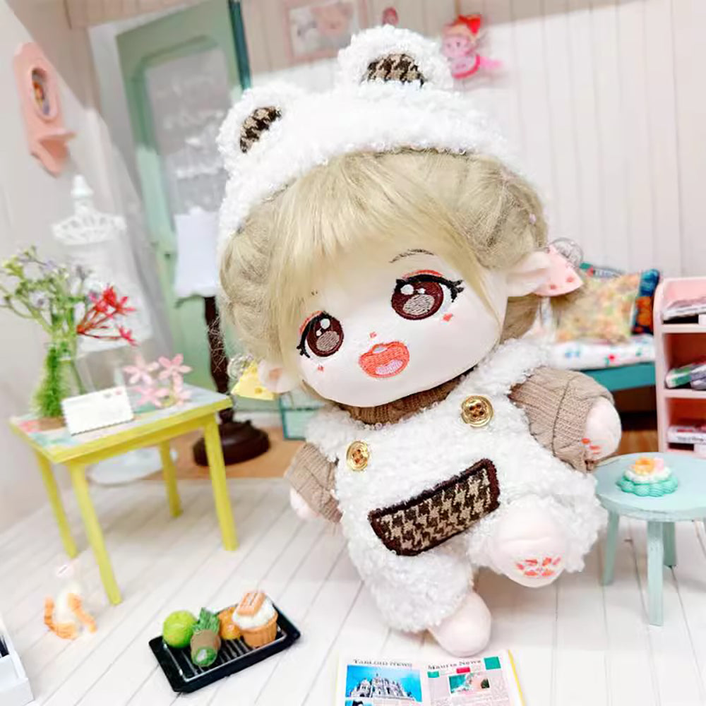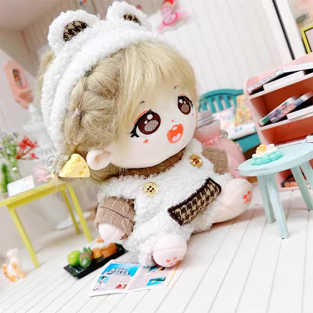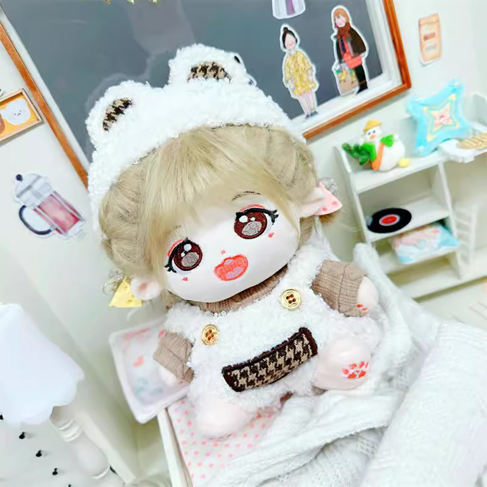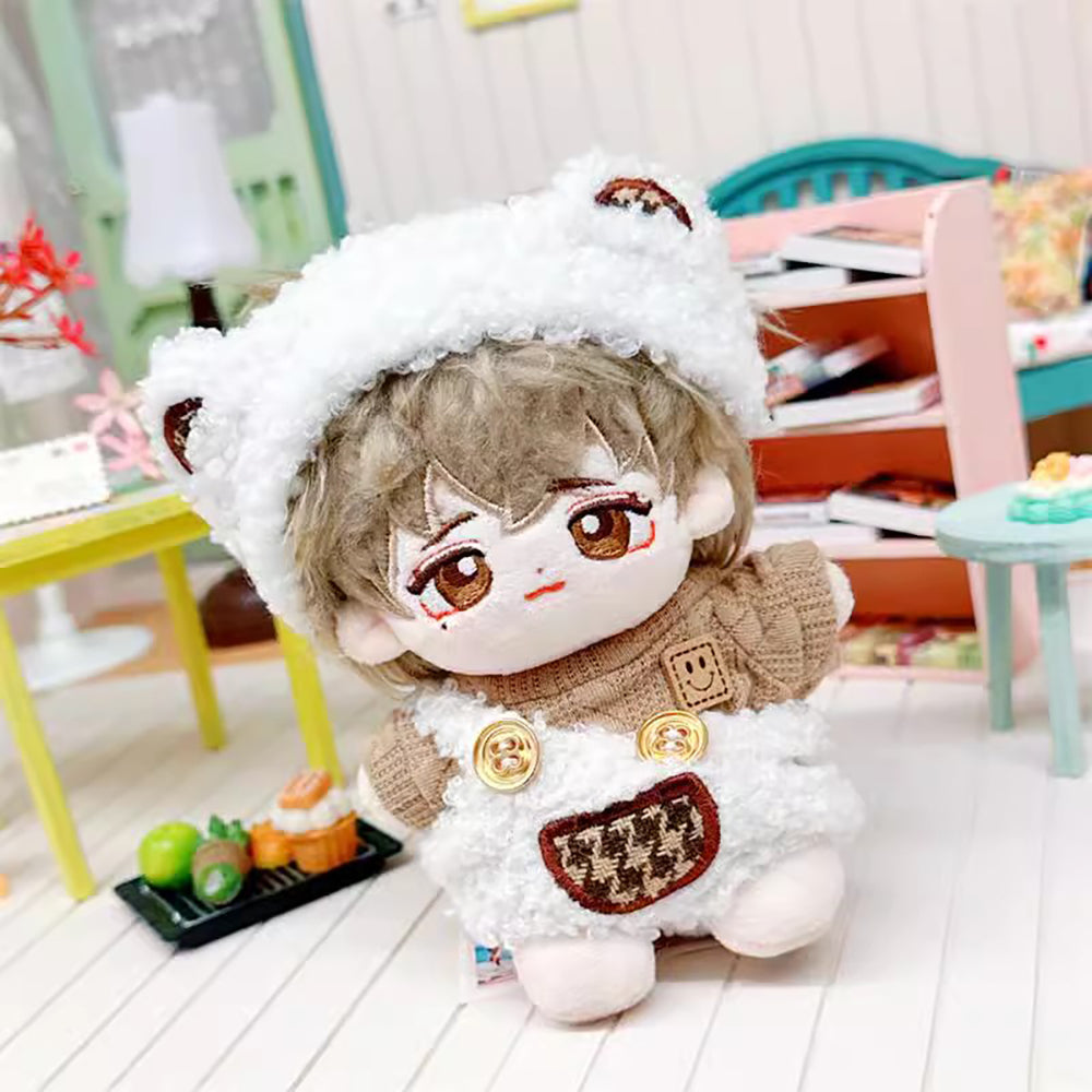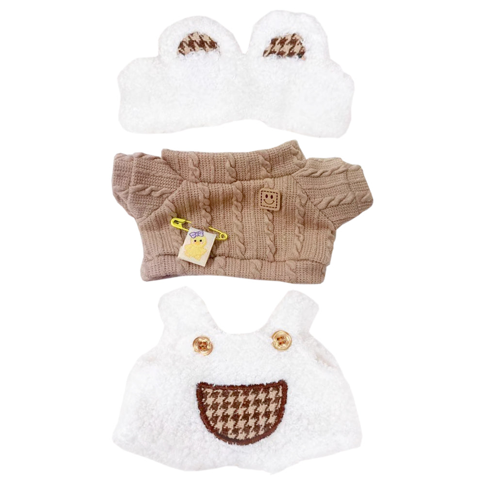 niannyyhouse 10cm~15cm 20cm Plush Doll Clothes Headwear Brown Sweater Bib Pants Warm Outfit Doll Accessories Dress Up
