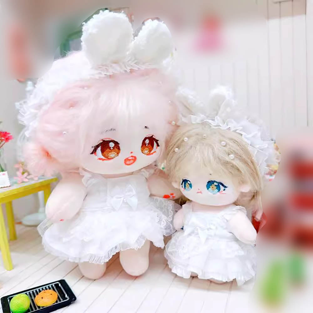 niannyyhouse 10cm-15cm 20cm Plush Doll Clothes White Headdress Suspender Dress Wedding Dress Doll Dress Up