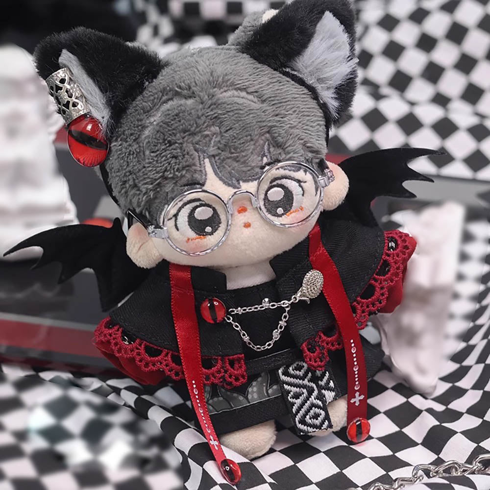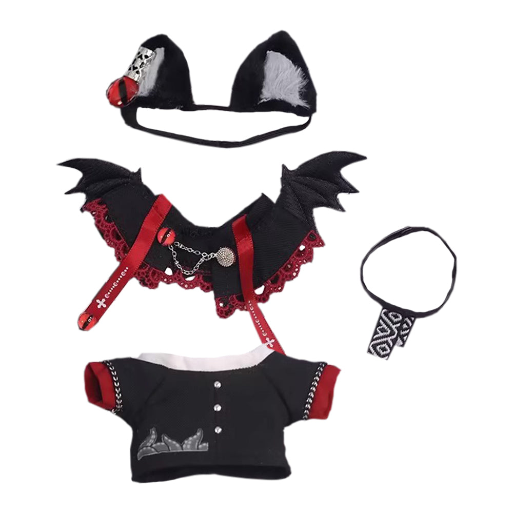 niannyyhouse 10cm-15cm Plush Doll Clothes Devil Cloak Headgear Coat Accessories Cat Ears Set Cotton Doll Dress Up