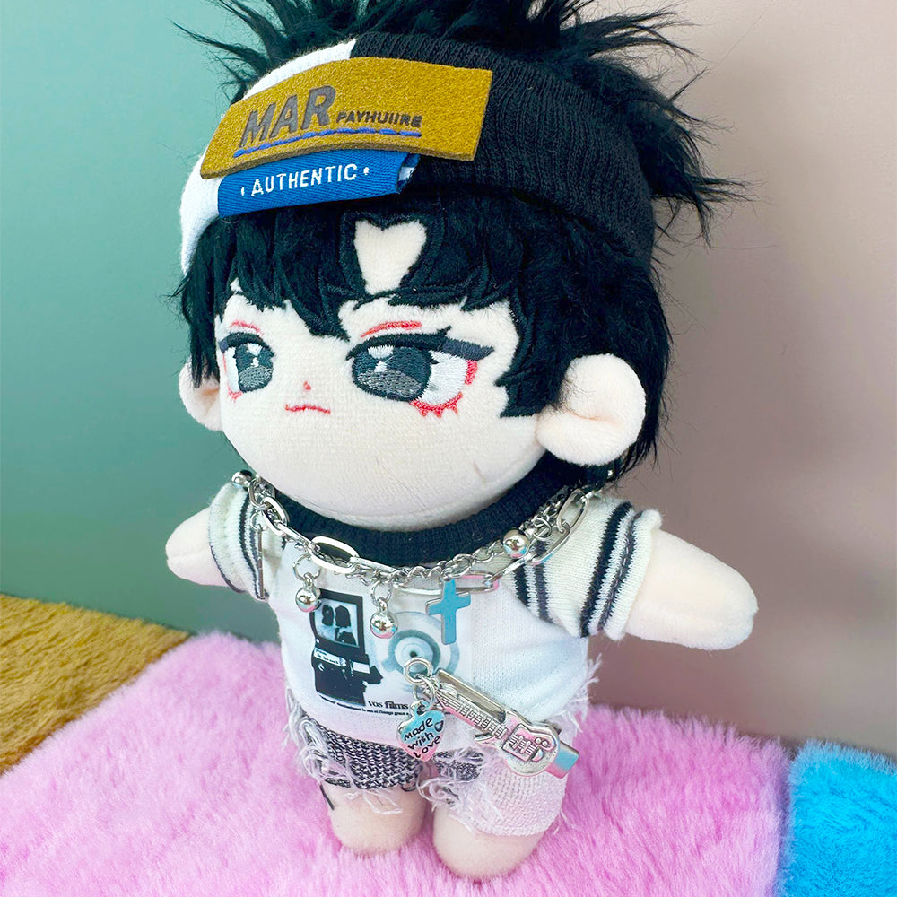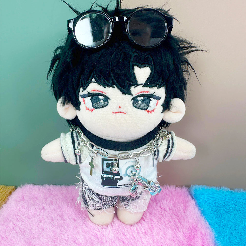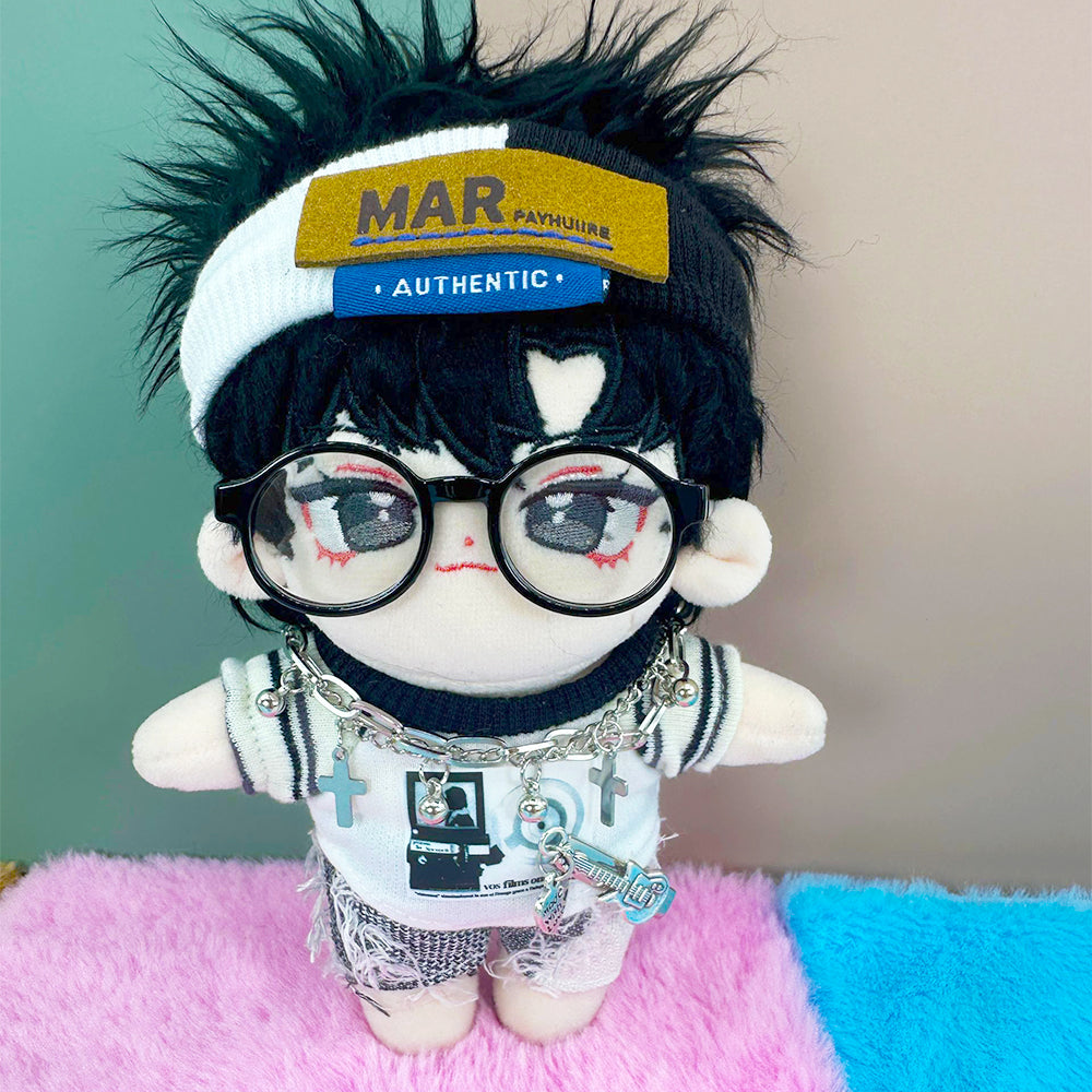 niannyyhouse 10cm-15cm Plush Doll Clothes Headband T-shirt Jeans Glasses Accessories Compatible with 17cm Labubu Doll