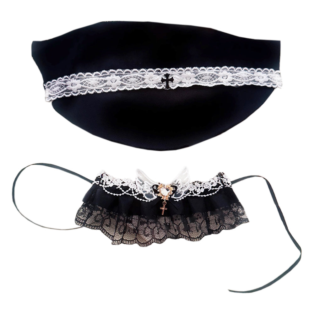 niannyyhouse 10cm-15cm Plush Doll Clothes Headscarf Bib Dark Set Doll Dressup