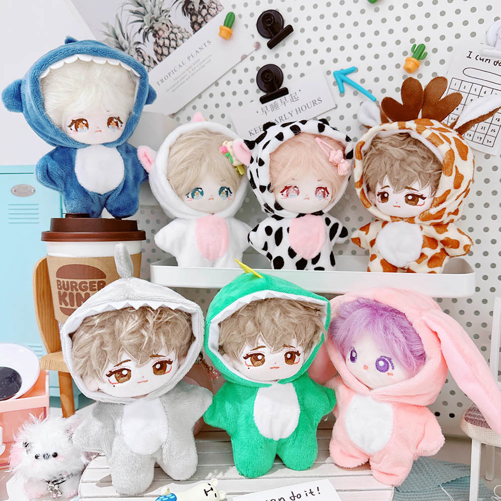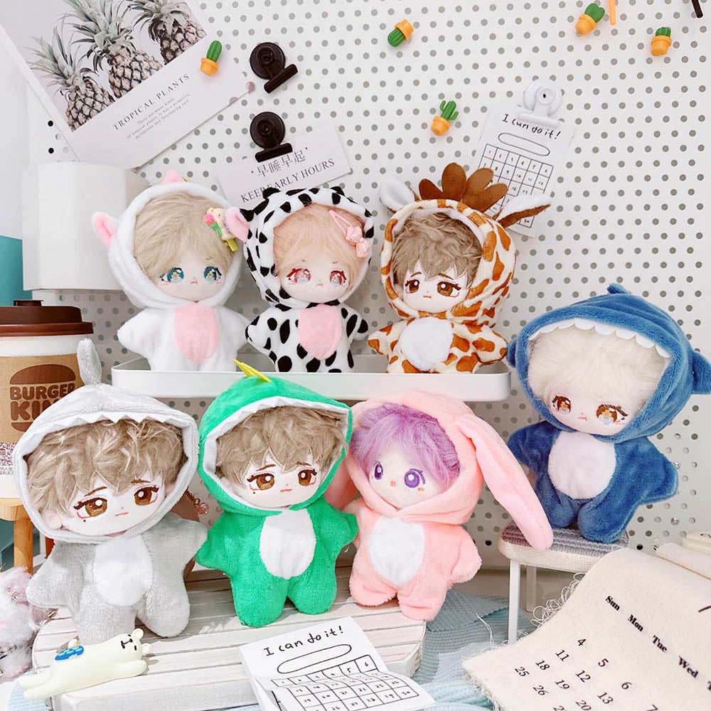 niannyyhouse 10cm~15cm Plush Doll Clothes Onesies Sharks Dinosaurs Cows Rabbits Fawns Unicorn Patterns Bodysuit Dolls Dress Up Accessories