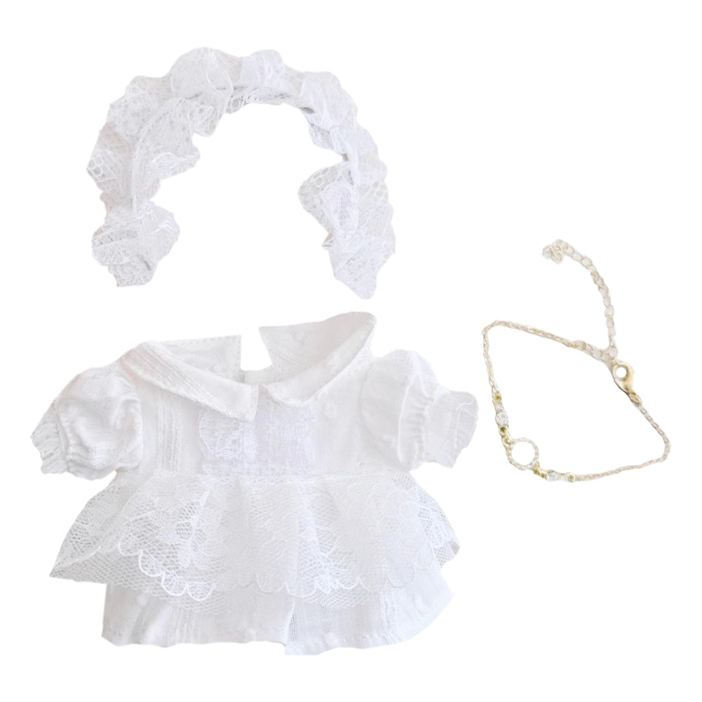 niannyyhouse 10cm-15cm Plush Doll Clothes White Headdress Dress Accessories Compatible with 17cm Labubu Doll