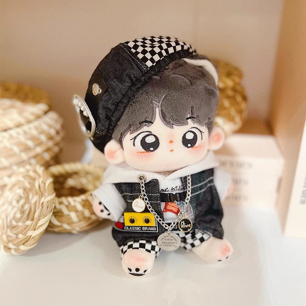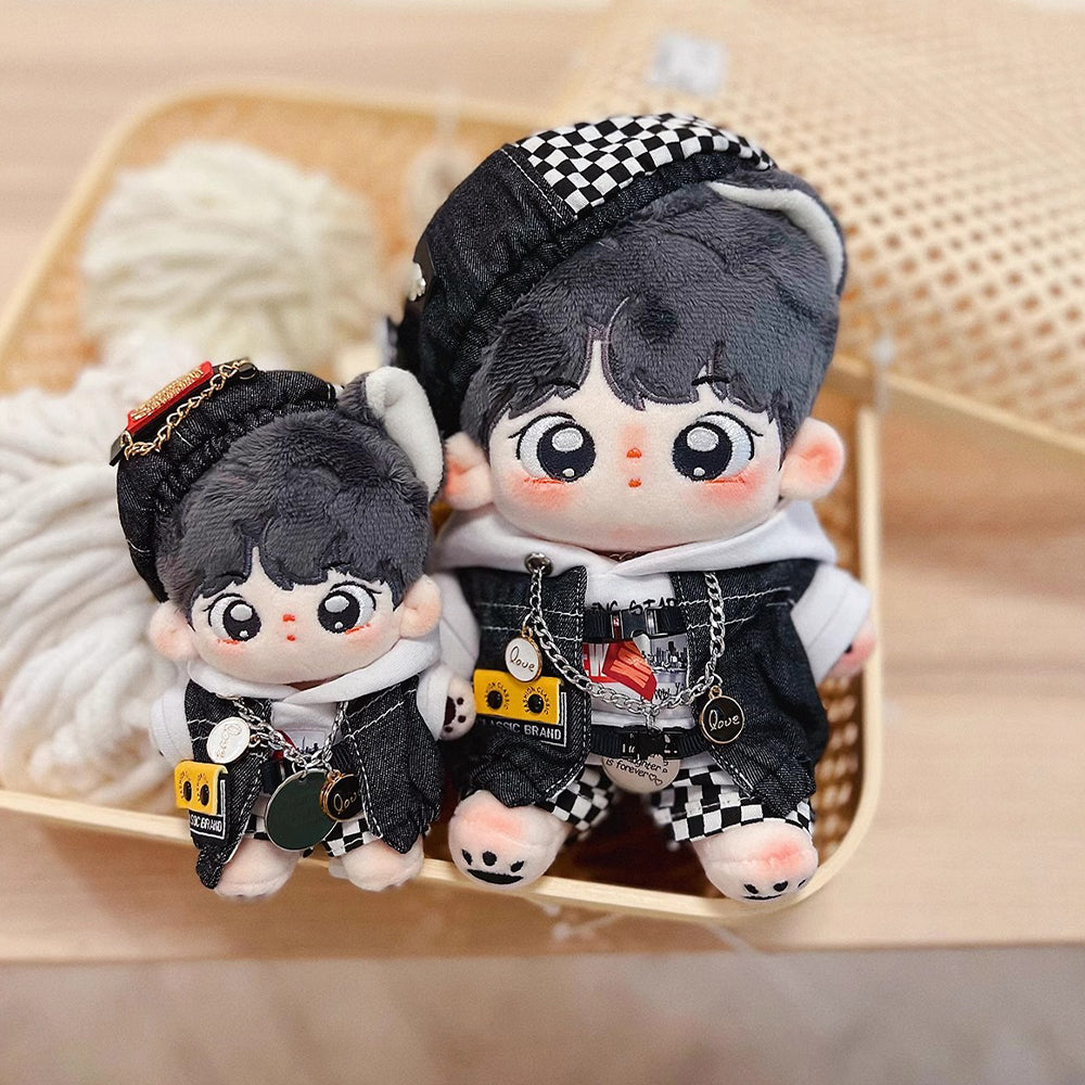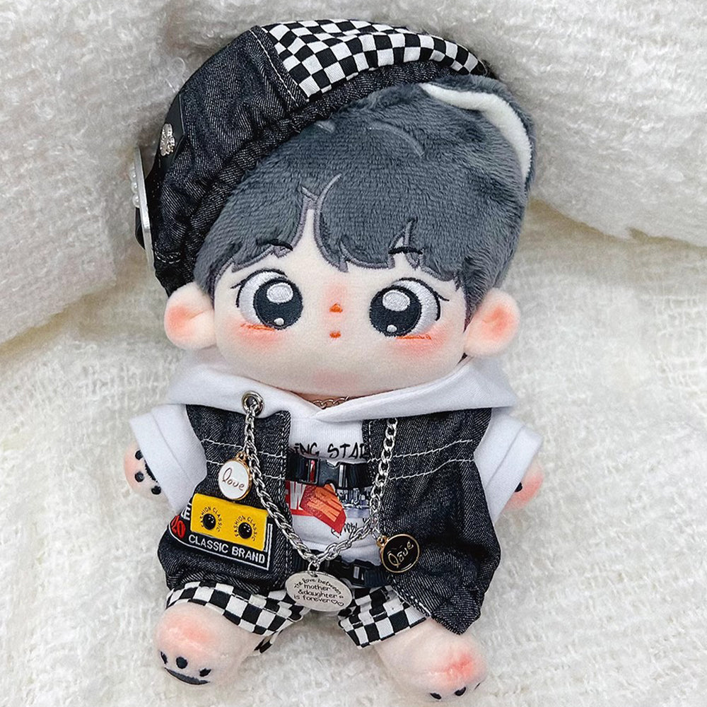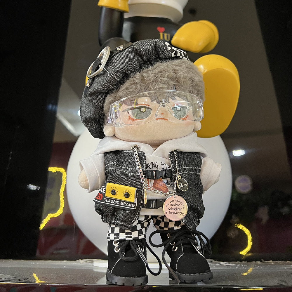 niannyyhouse 15cm 20cm Plush Doll Clothes Black and White Mist Set Beret Hoodie Pants Glasses Vest Shoes Soft Stuffed Plush Toy Dress Up
