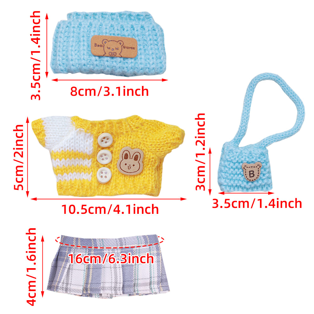 niannyyhouse 15cm-17cm Doll Clothes Hat Sweater JK Skirt Backpack Stuffed Animal Outfit Dressup Accessories