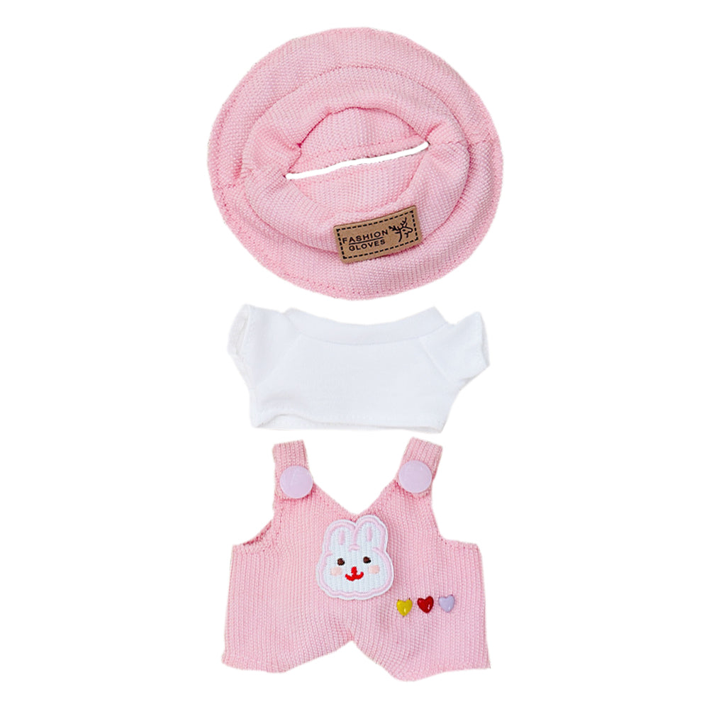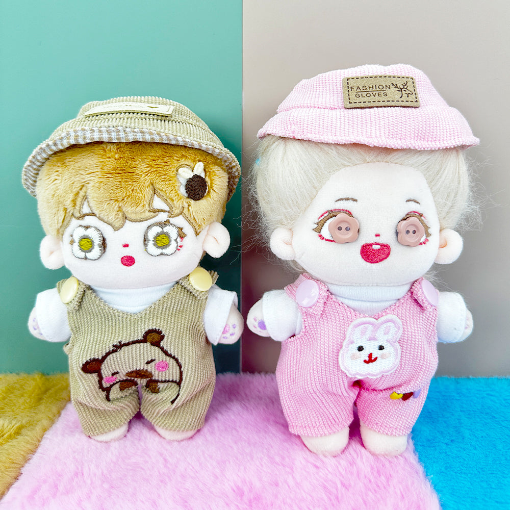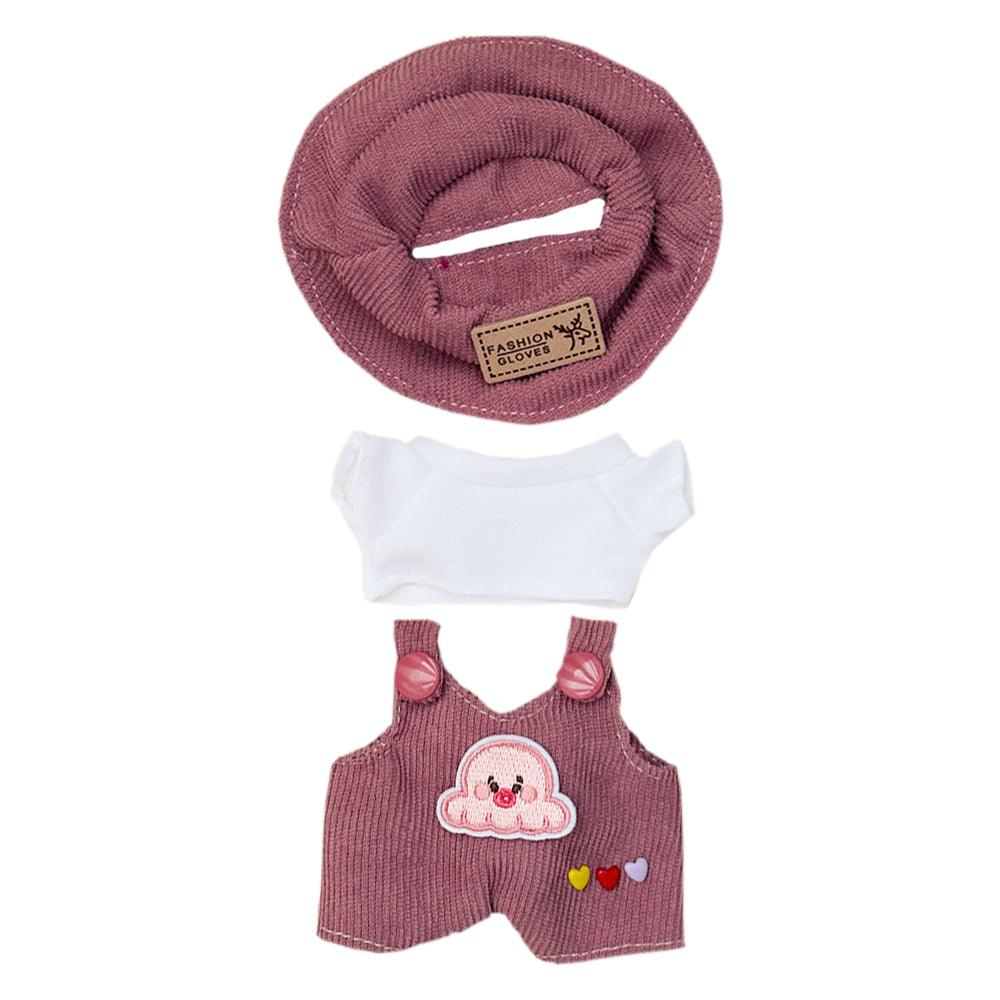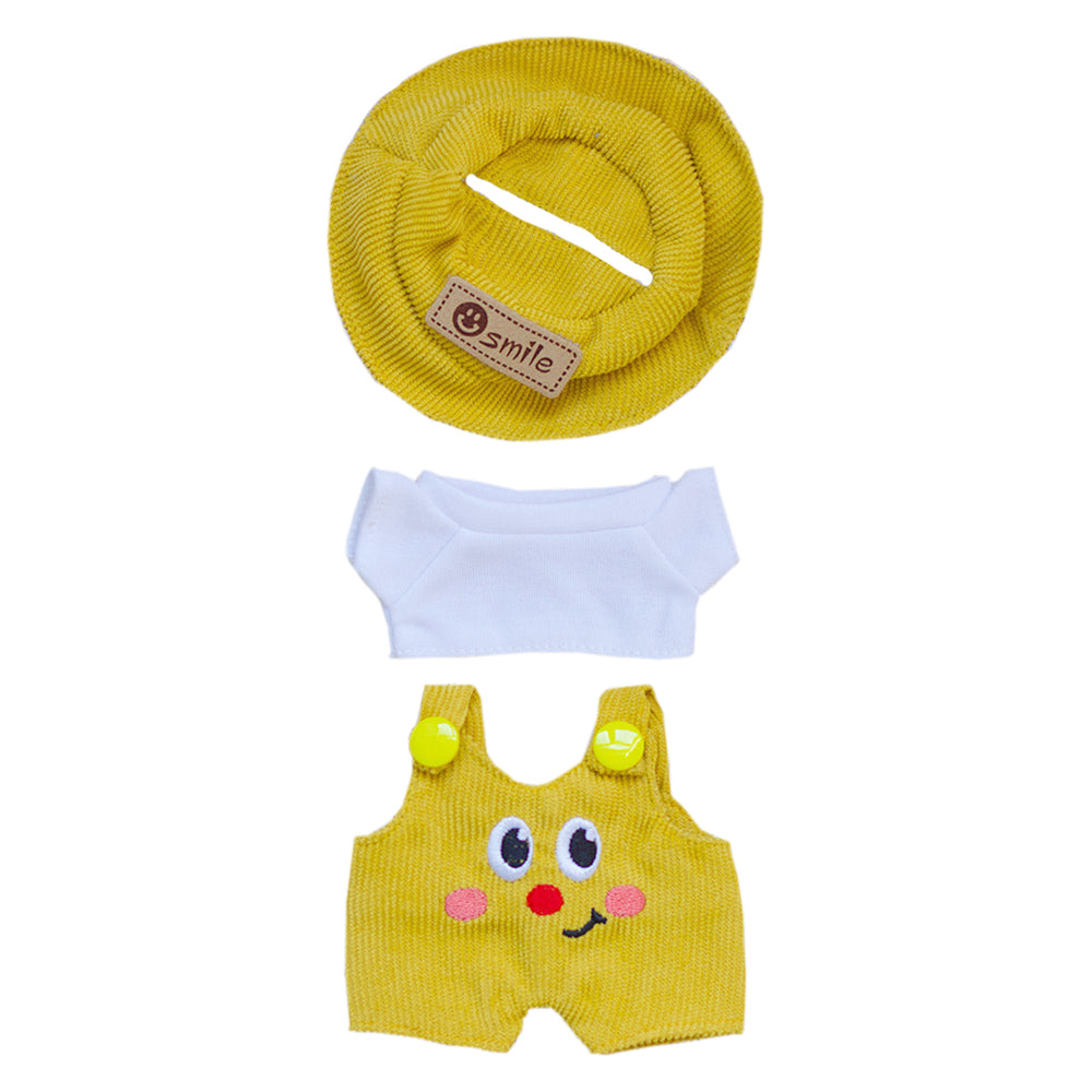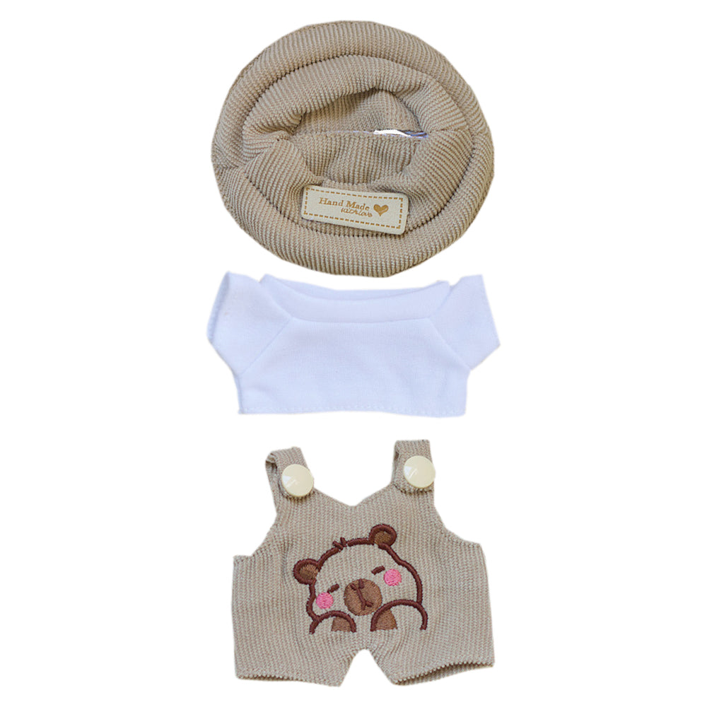 niannyyhouse 17cm Doll Clothes Hat White T-Shirt Animal Print Overalls 15cm Plush Doll Dressup