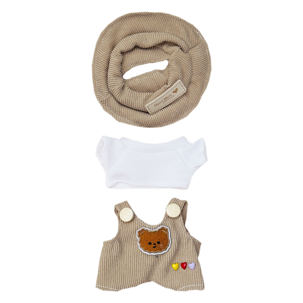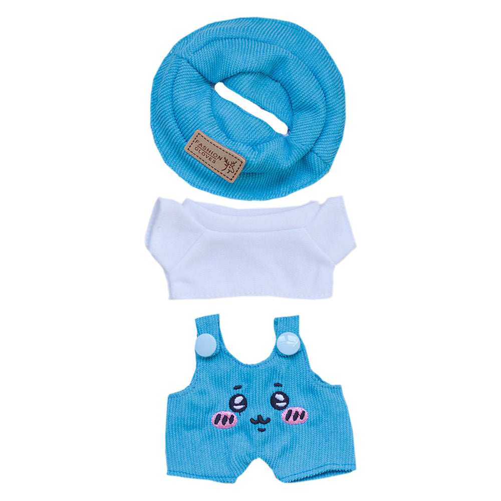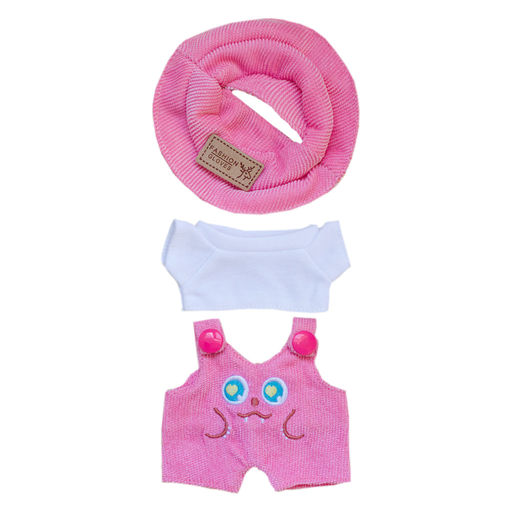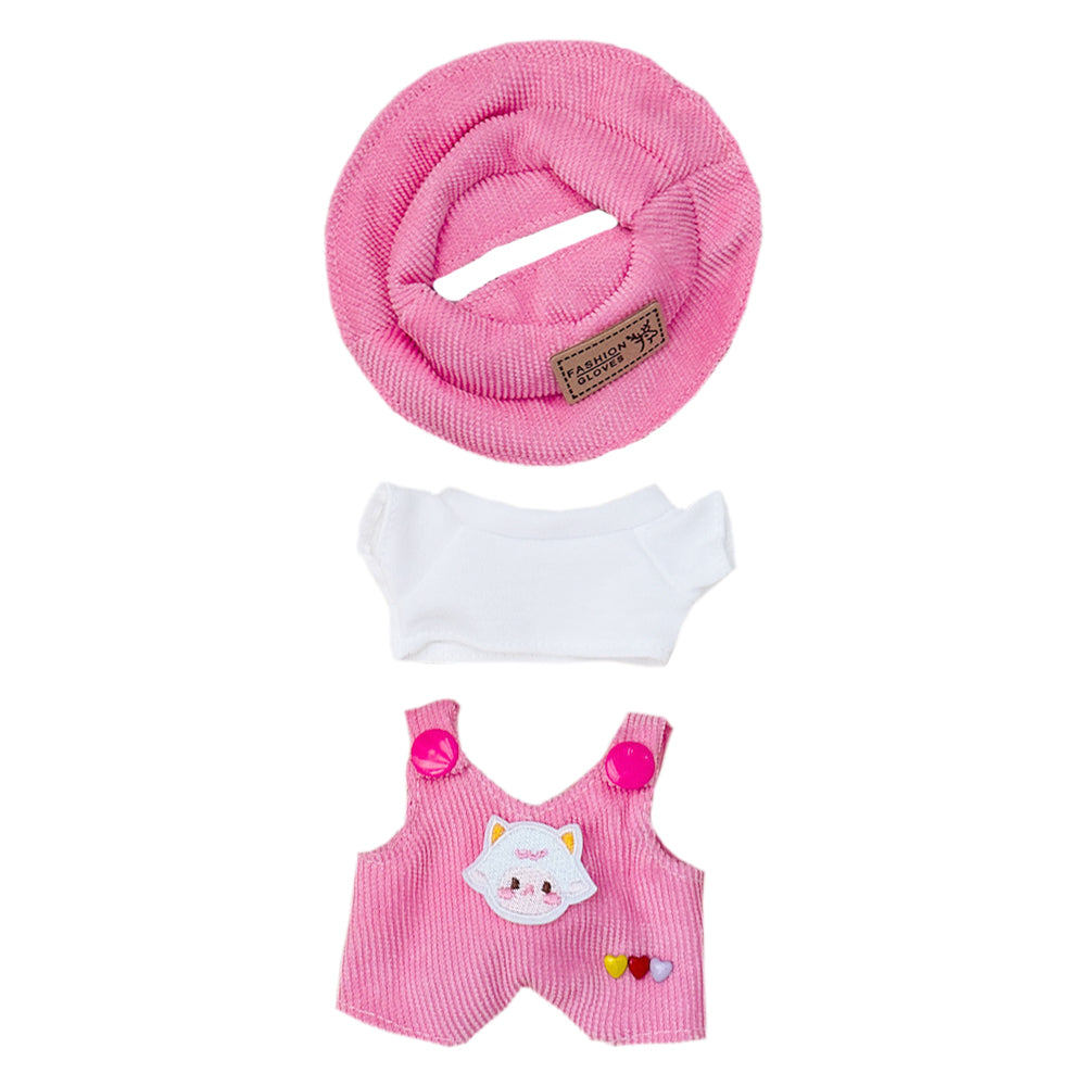 niannyyhouse 17cm Doll Clothes Hat White T-Shirt Animal Print Overalls 15cm Plush Doll Dressup
