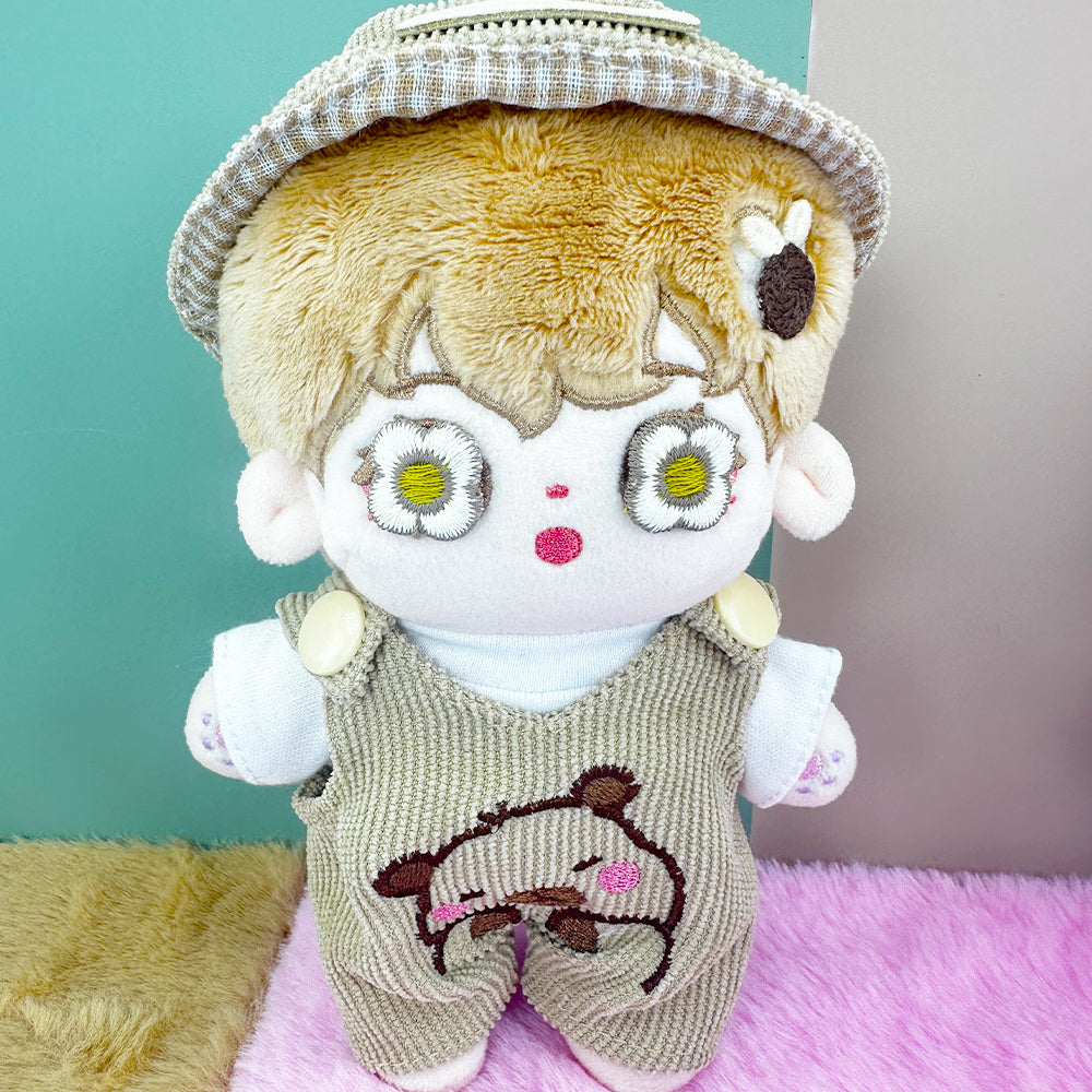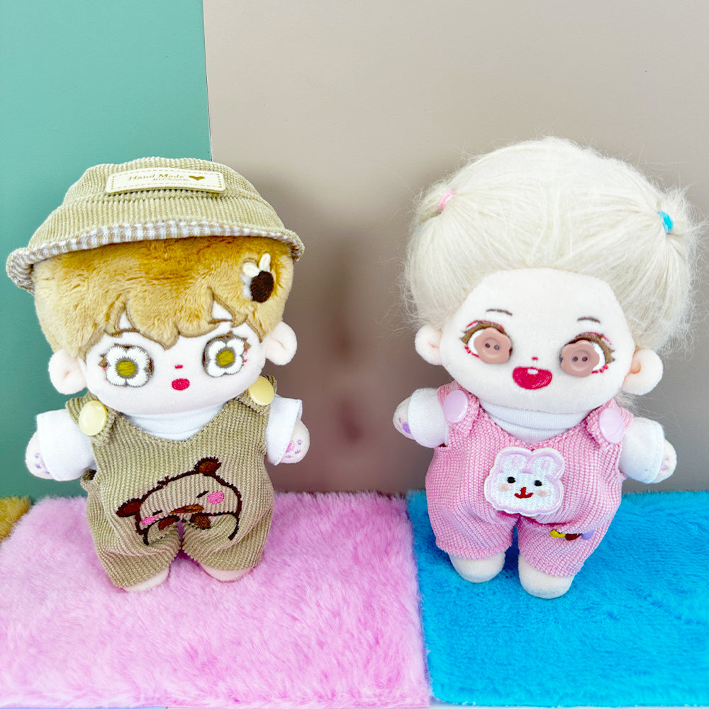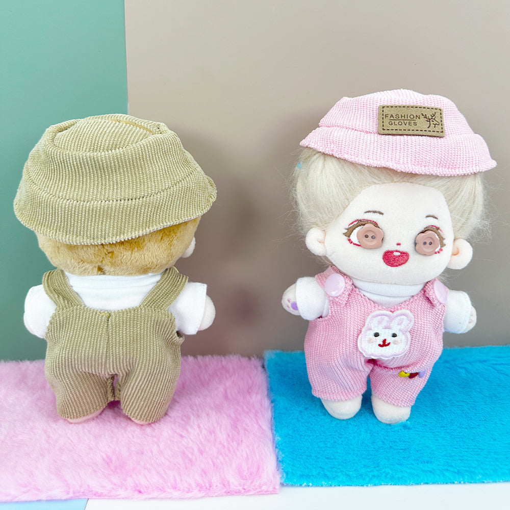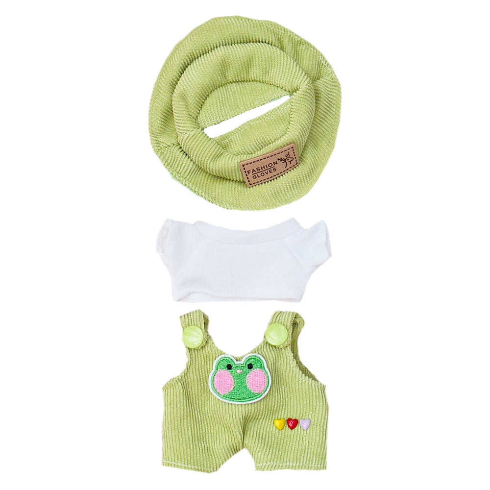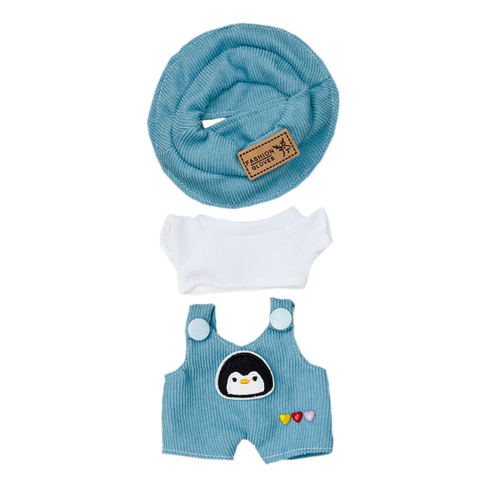 niannyyhouse 17cm Doll Clothes Hat White T-Shirt Animal Print Overalls 15cm Plush Doll Dressup
