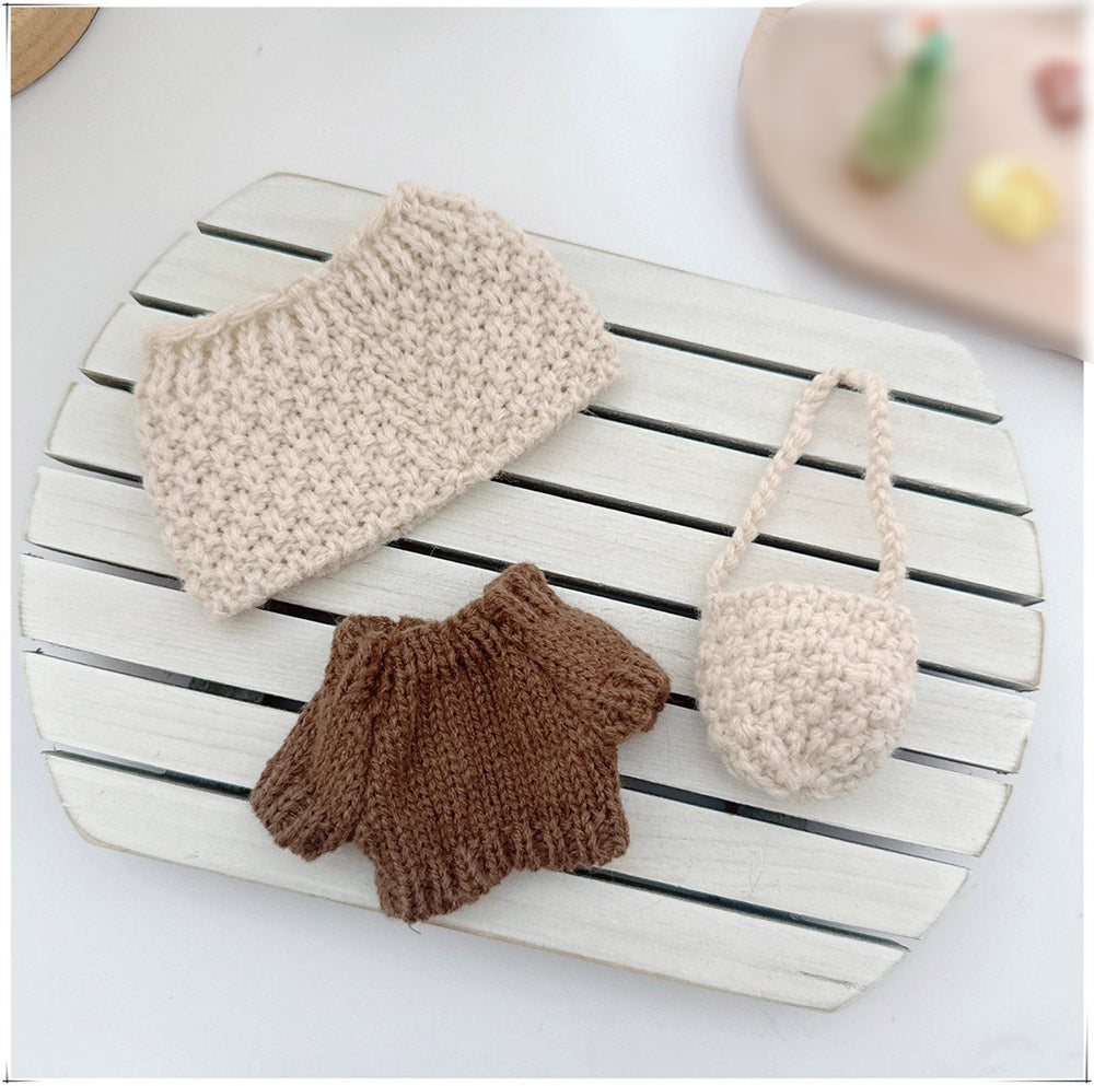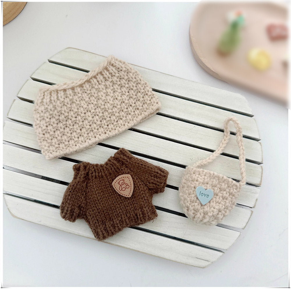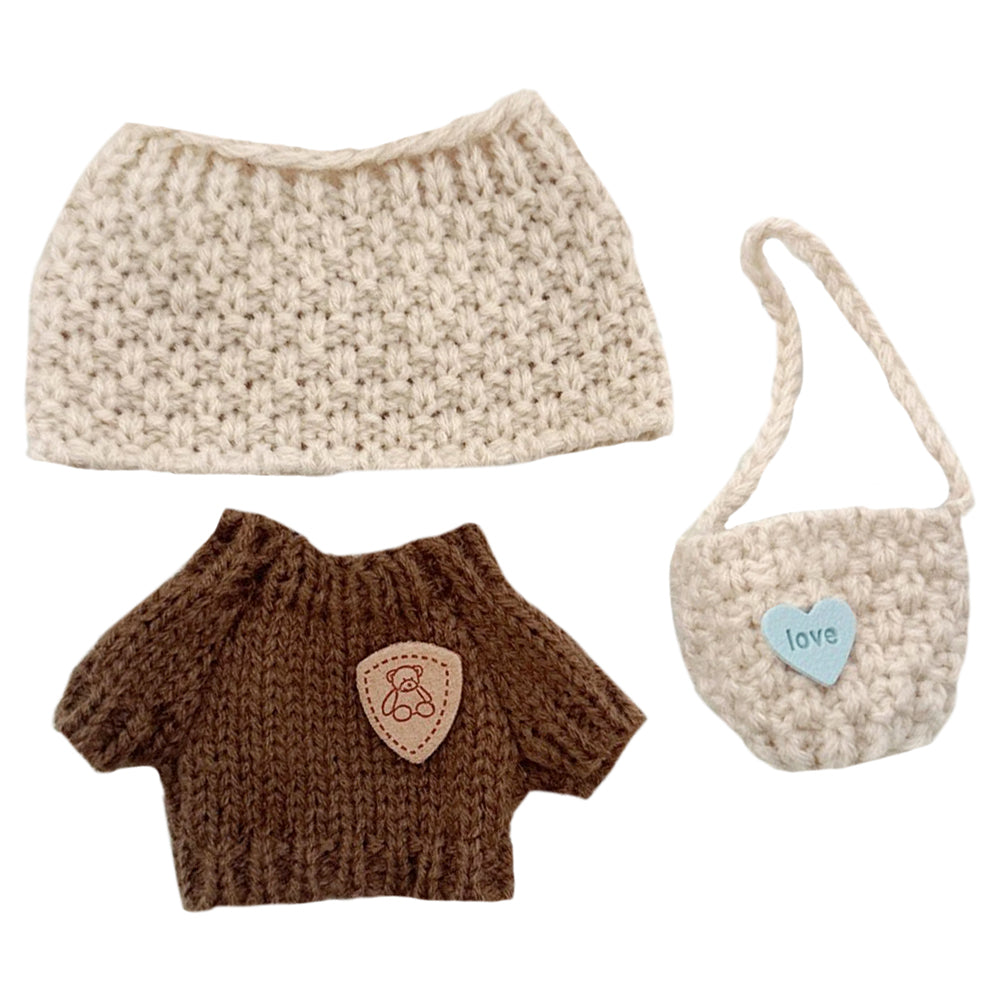 niannyyhouse Doll Clothes Accessories Set, Knitted Hat, Sweater, Backpack for 15-17cm Dolls