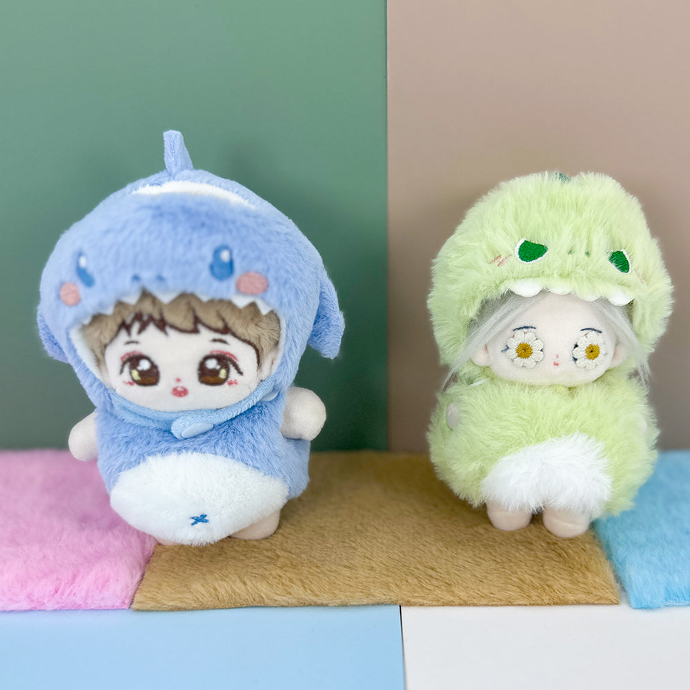 niannyyhouse Doll Clothes Dinosaur Shark Jumpsuit with Head Cover, for 15cm-17cm Plush Dolls
