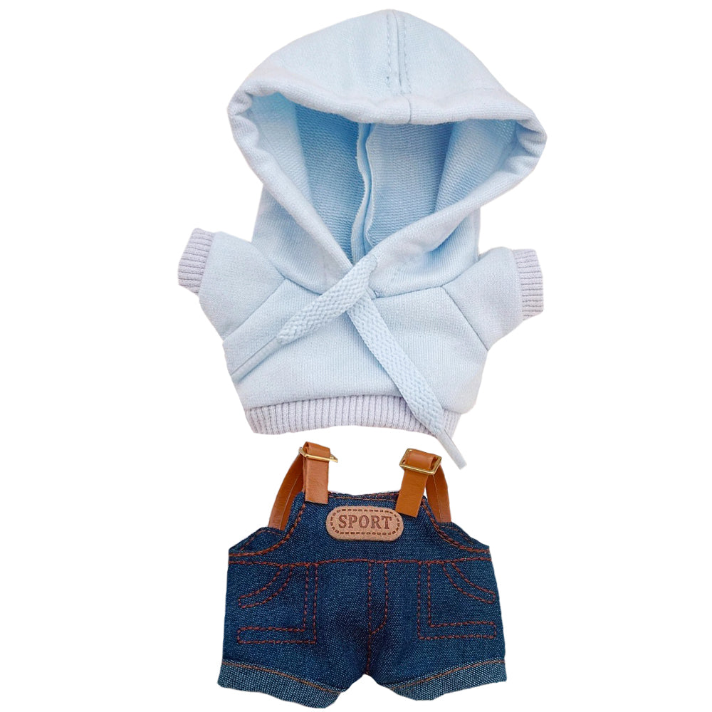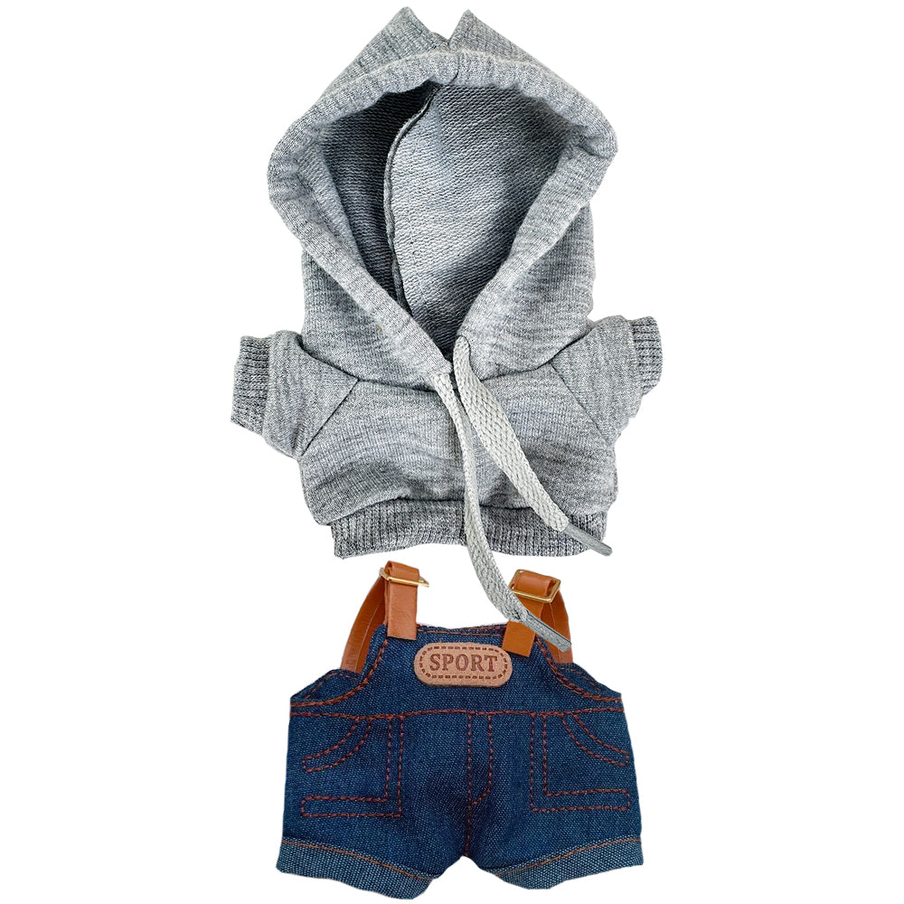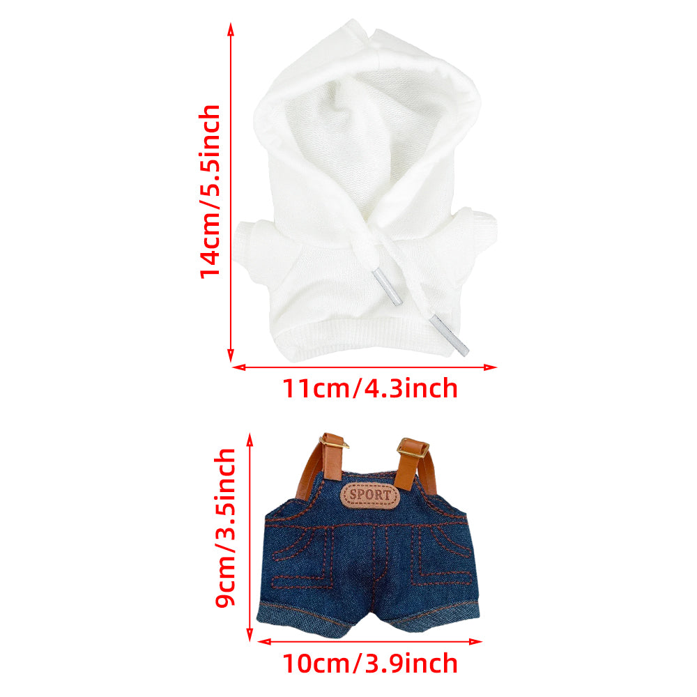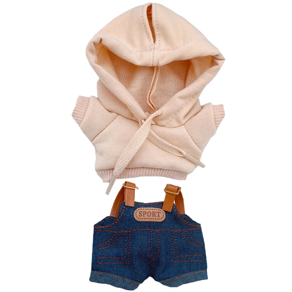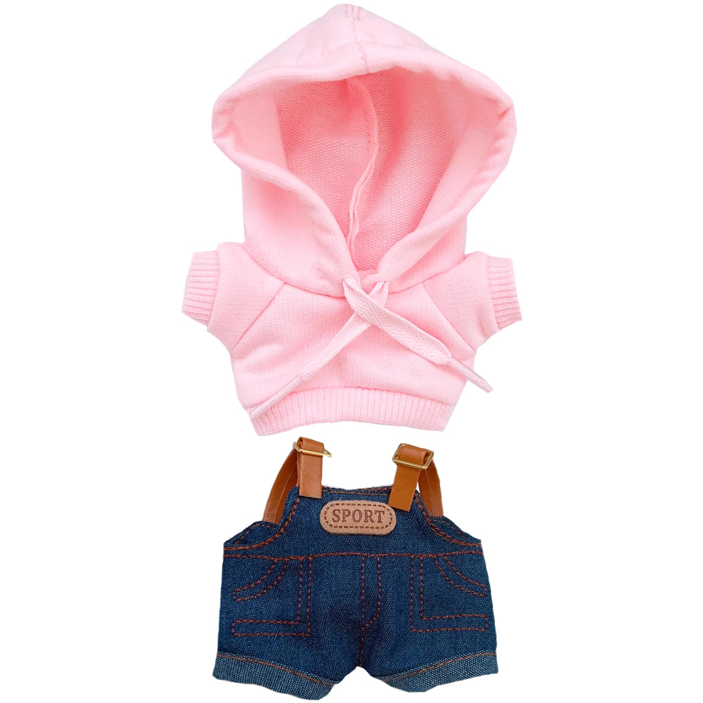 niannyyhouse Doll Clothes Set with Hoodies and Denim Overalls, 15-17cm Plush Doll Dress Up Accessories