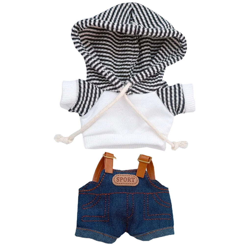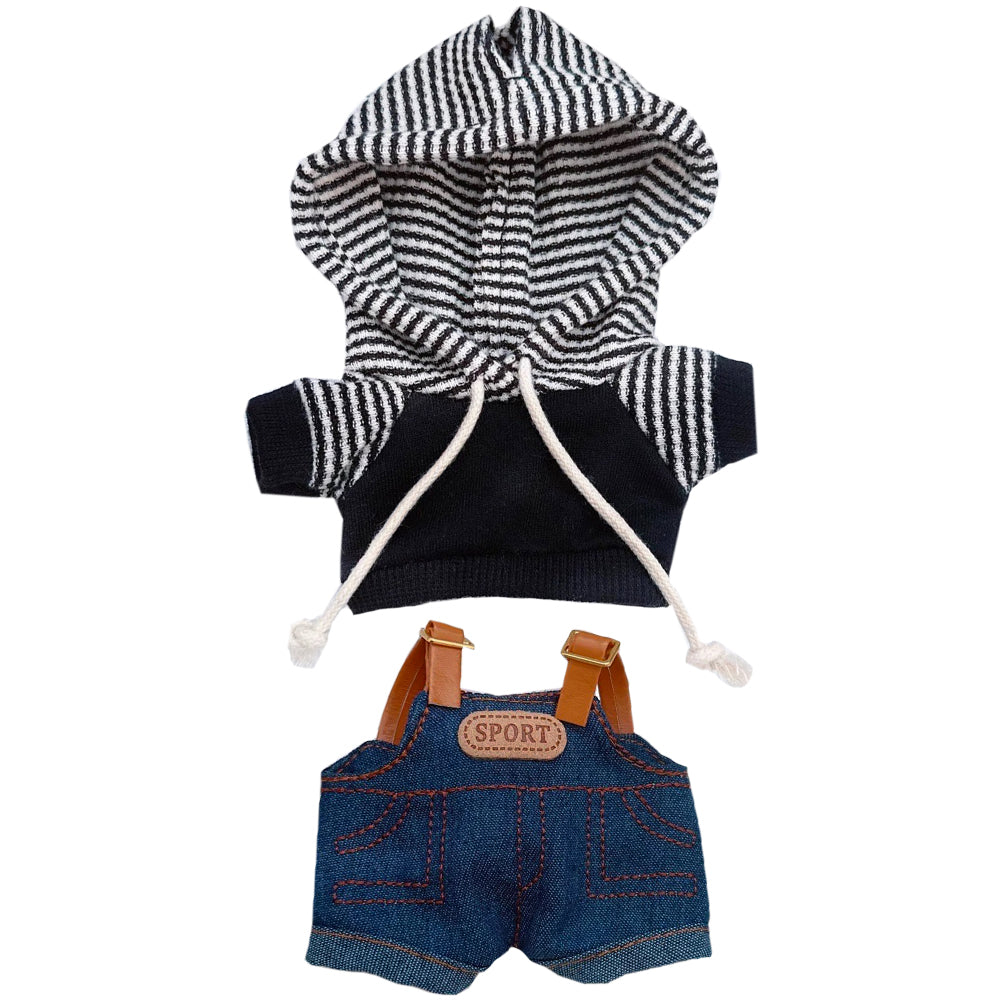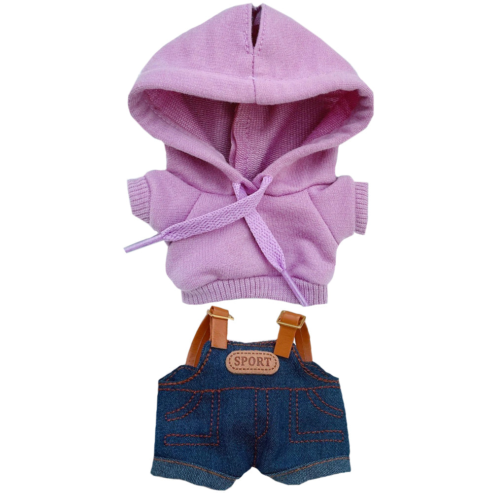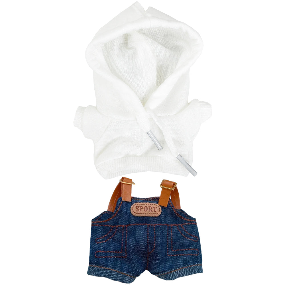 niannyyhouse Doll Clothes Set with Hoodies and Denim Overalls, 15-17cm Plush Doll Dress Up Accessories