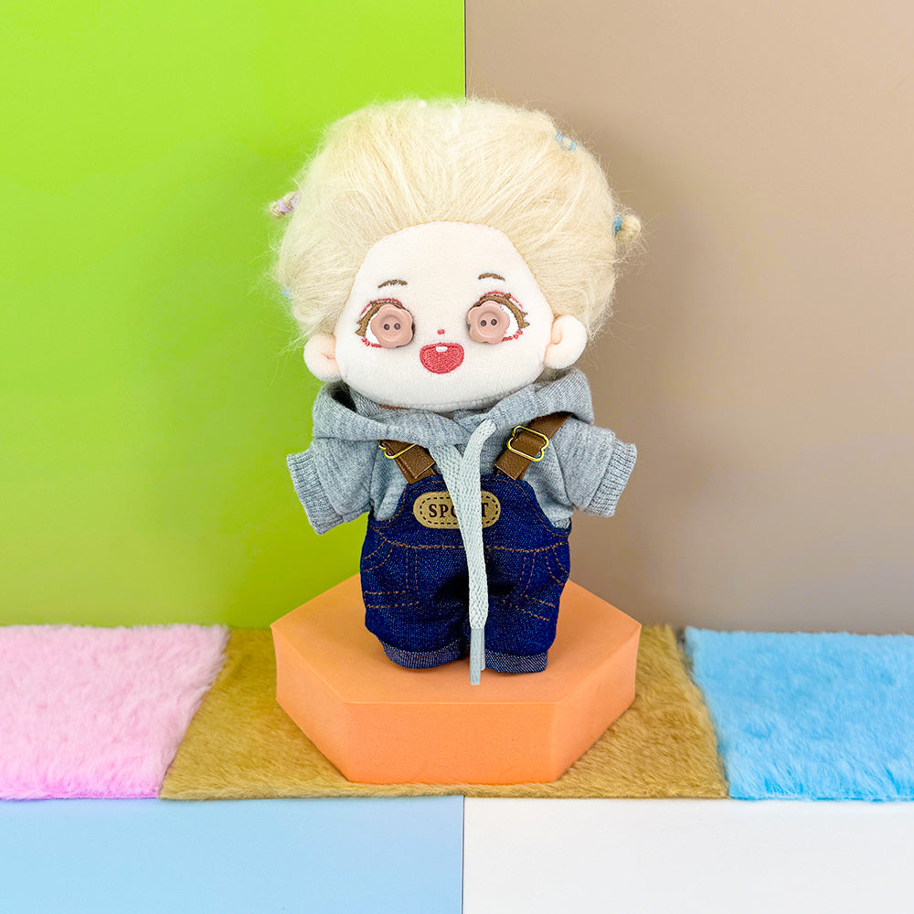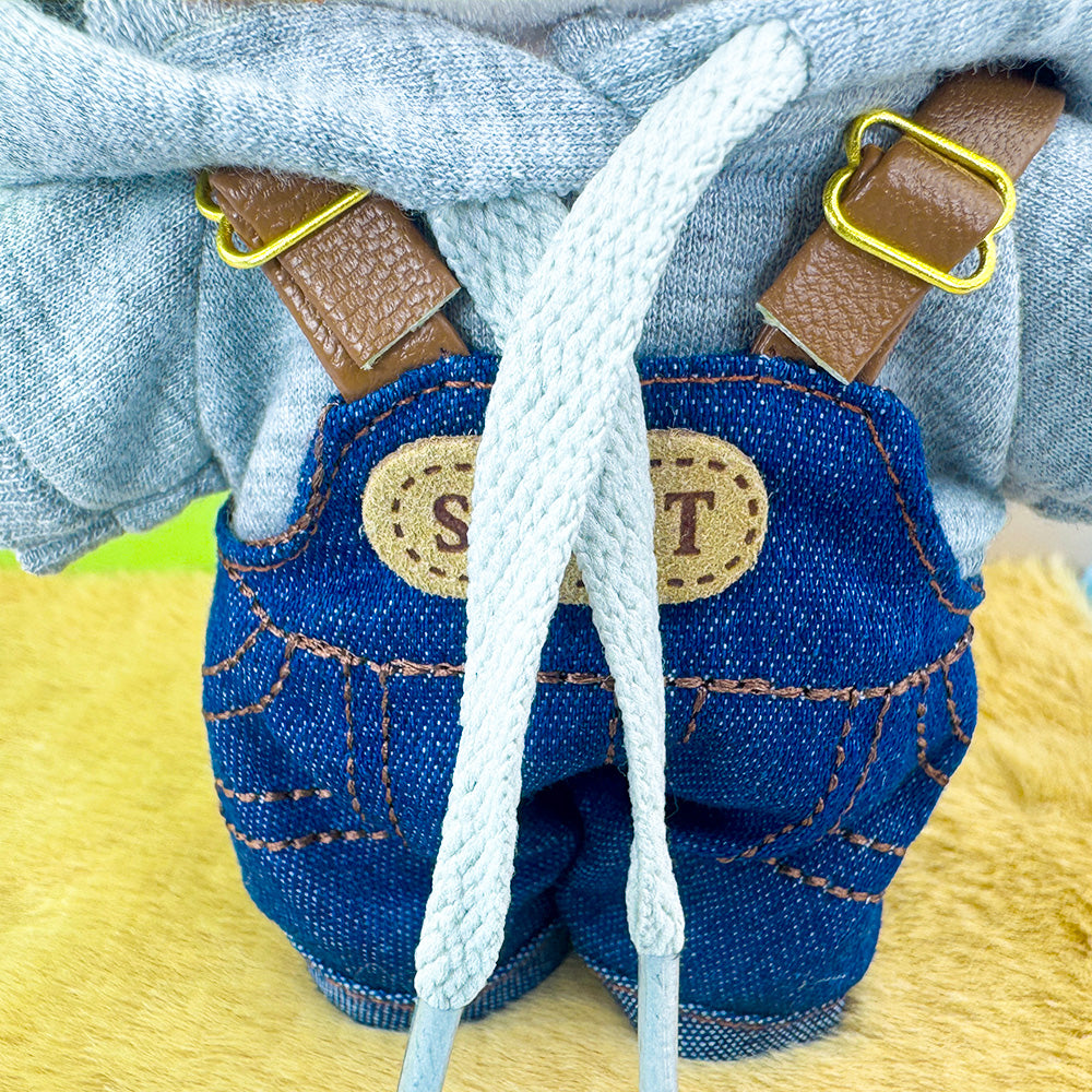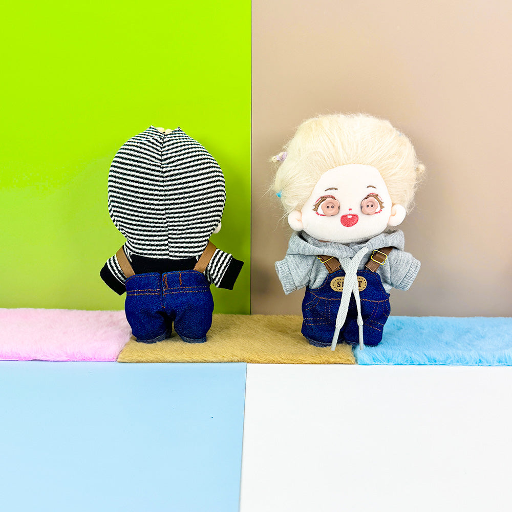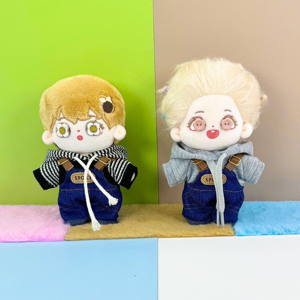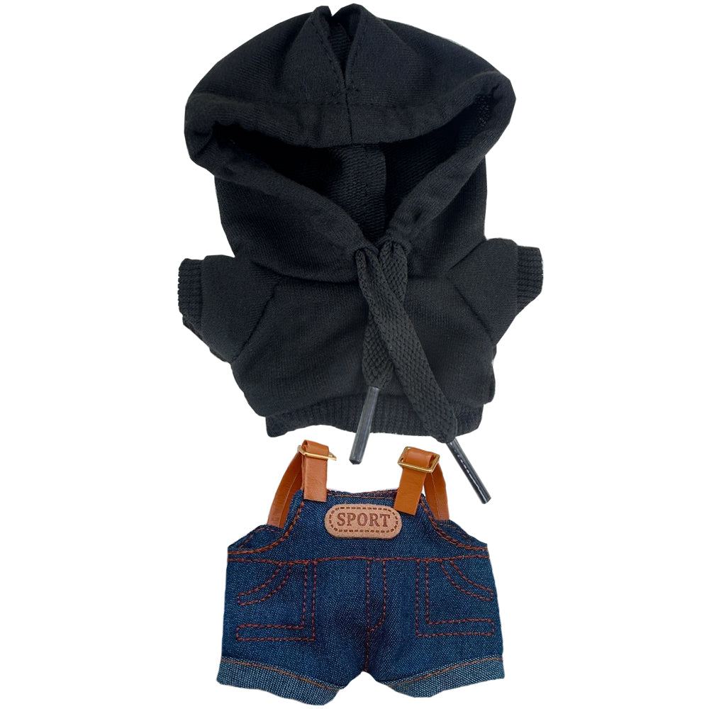 niannyyhouse Doll Clothes Set with Hoodies and Denim Overalls, 15-17cm Plush Doll Dress Up Accessories