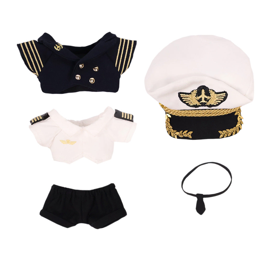 niannyyhouse Plush Doll Clothes Flight Uniform Set, 5 Pieces with Hat, Jacket, Shirt, Tie, Pants, 10-15cm Size for Stuffed Toys