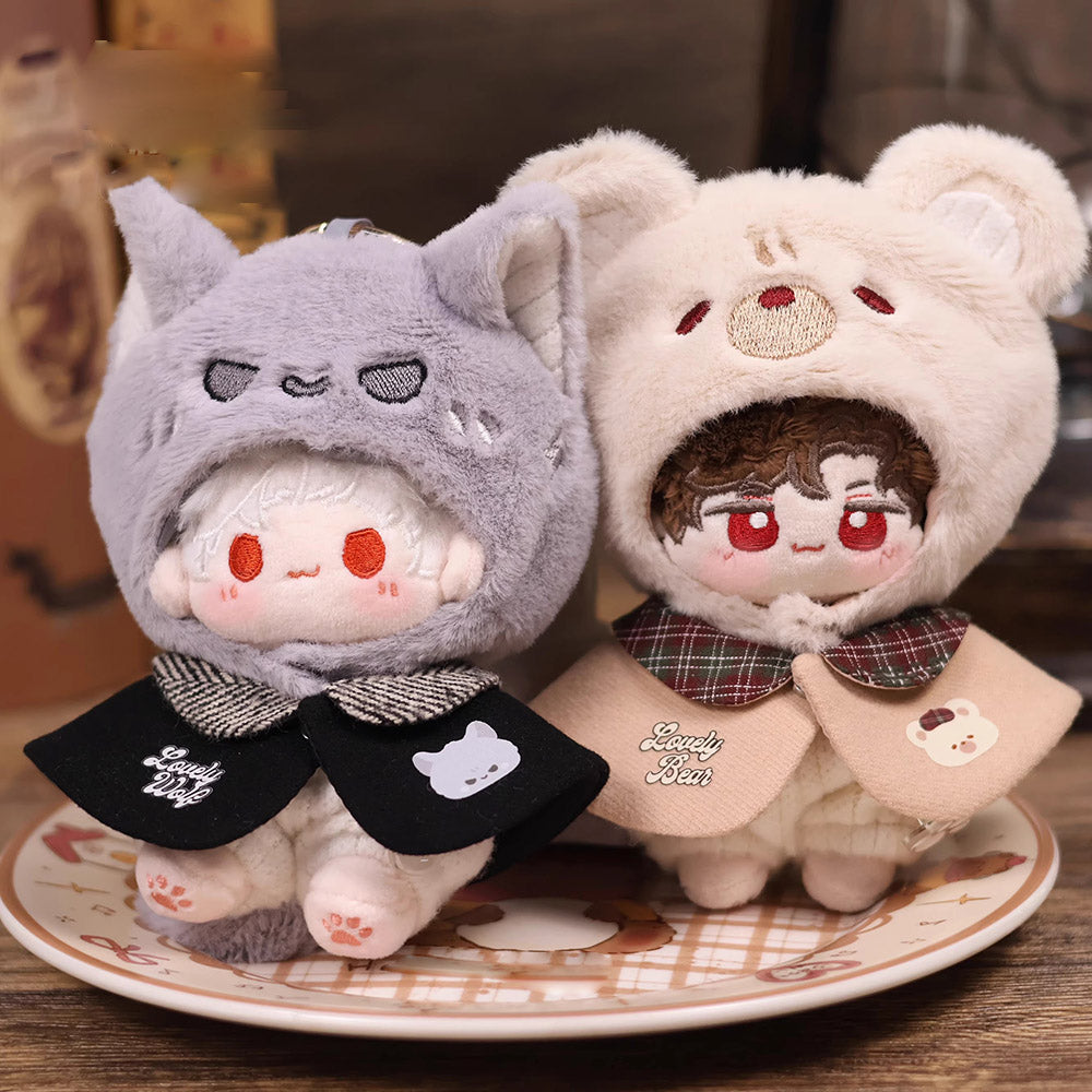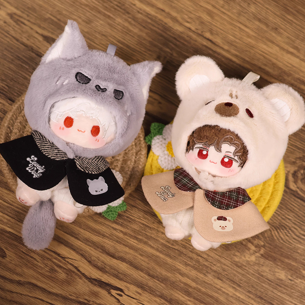 niannyyhouse Plush Doll Clothes Set, 10-15cm, Hat Cape Pants, Wolf Bear Pattern Stuffed Toy Dress Up Accessories