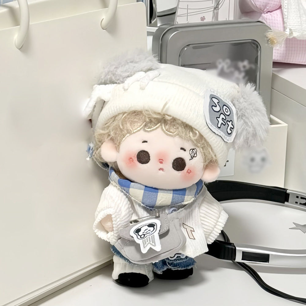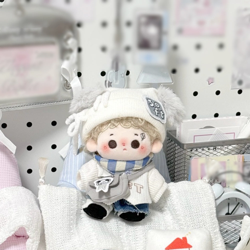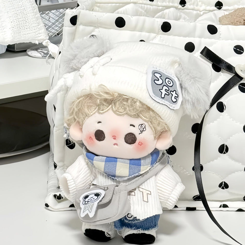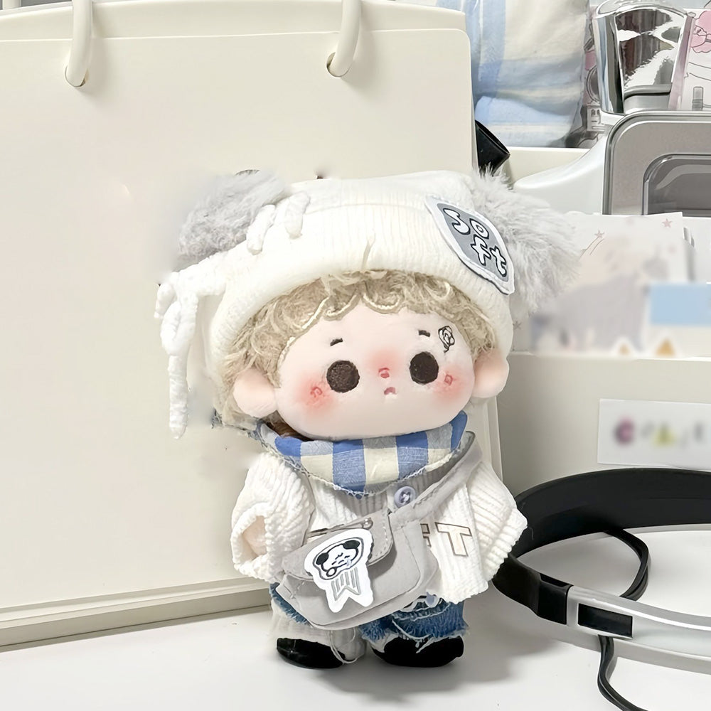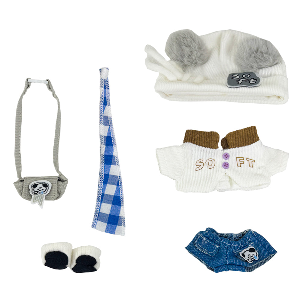 niannyyhouse Plush Doll Clothes Set, 6-Piece Puppy Outfit with Hat, Jacket, Jeans, Scarf, Backpack, Shoes, 10-15cm Stuffed Toy Accessories