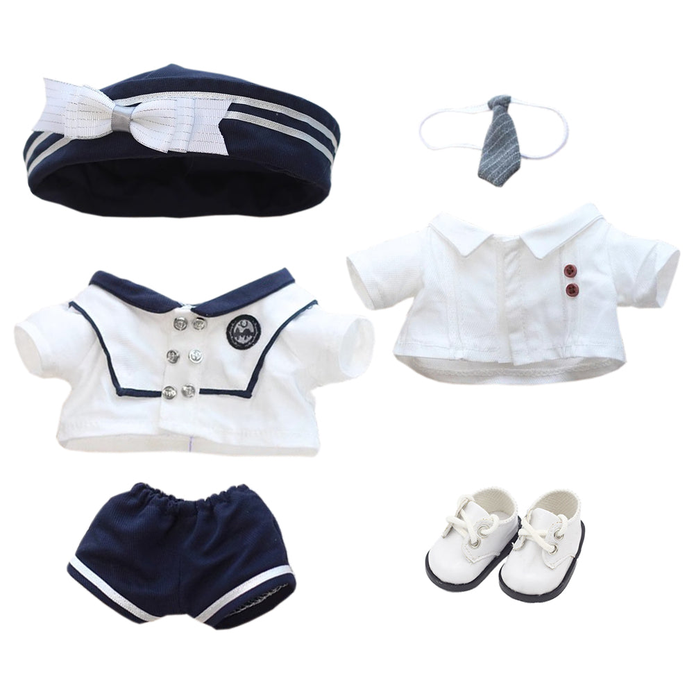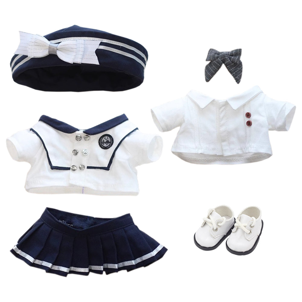 niannyyhouse 20cm Doll Clothes Hat Coat Shirt Pants Skirt Tie Shoes Accessories School Uniform Sets 8in Plush Doll Dress Up