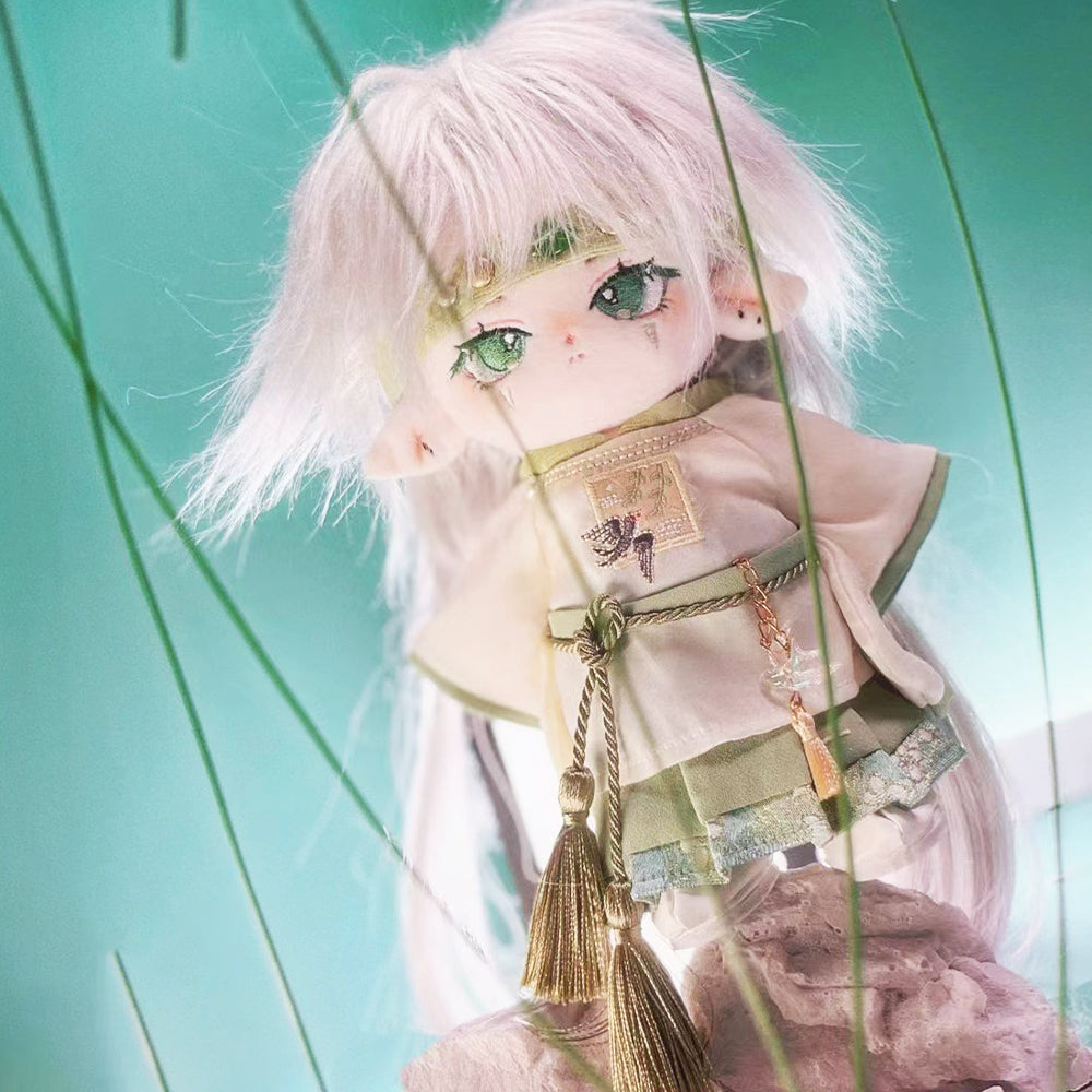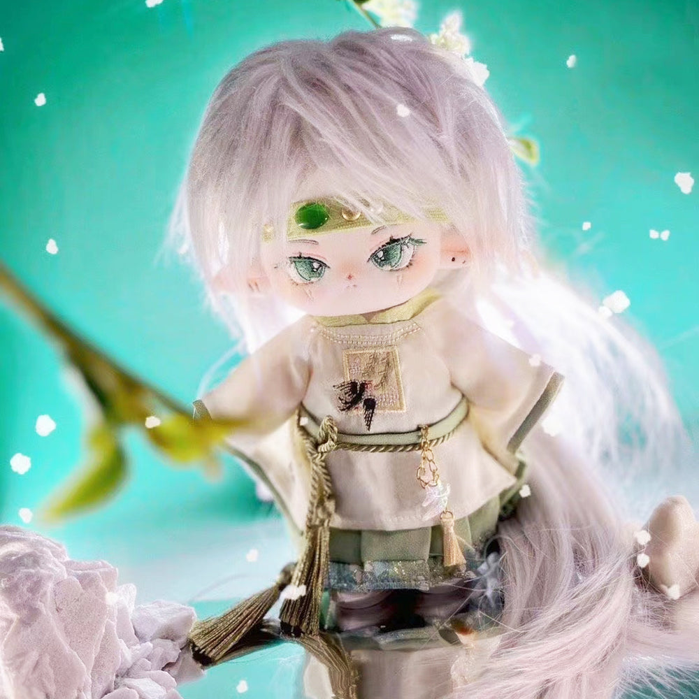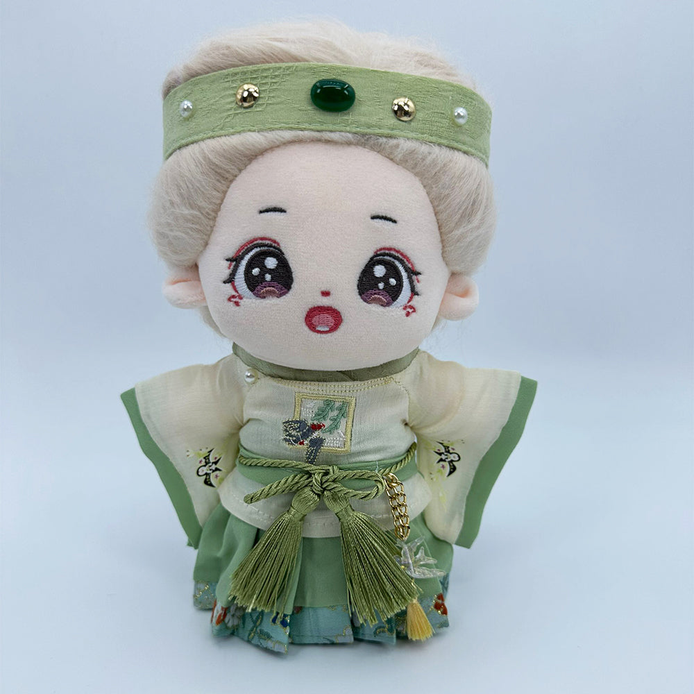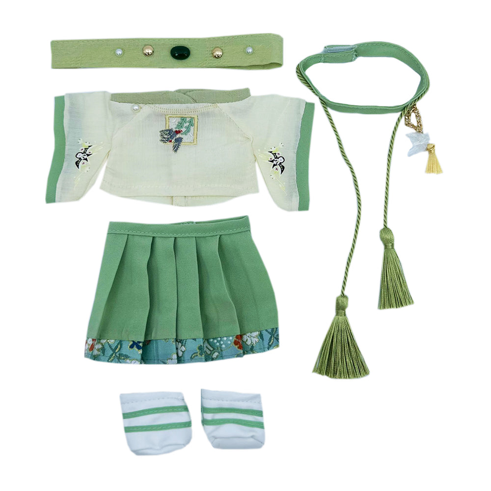 niannyyhouse 20cm Doll Clothes Headwear Coat Skirt Shoes Belt Green Ancient Outfit 8in Plush Doll Dress Up