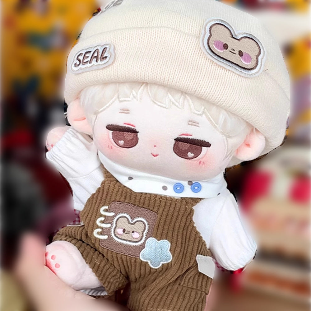 niannyyhouse 20cm Plush Doll Clothes Bear Pattern Hat T-Shirt Overalls Scarf 8in Doll Clothing