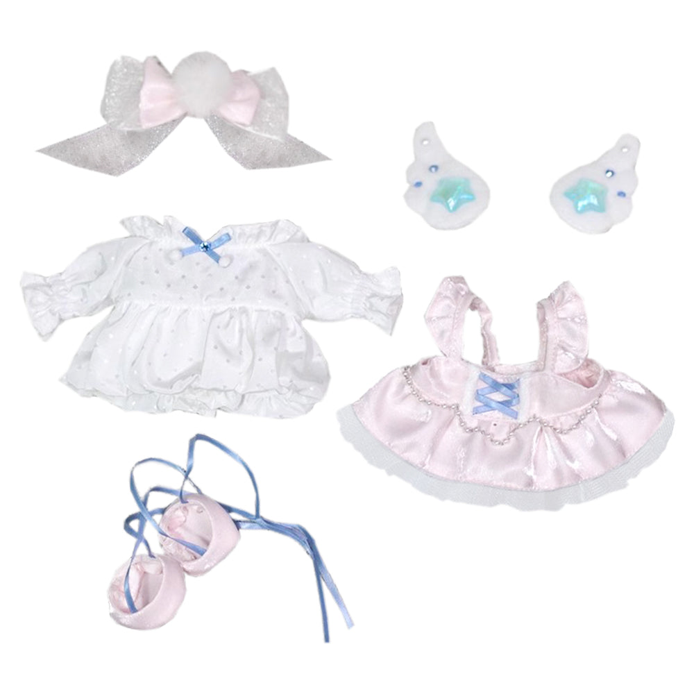 niannyyhouse 20cm Plush Doll Clothes Hairpins Bows Dresses Suspender Skirts Shoes Swan Suit 8in Stuffed Doll Dressup