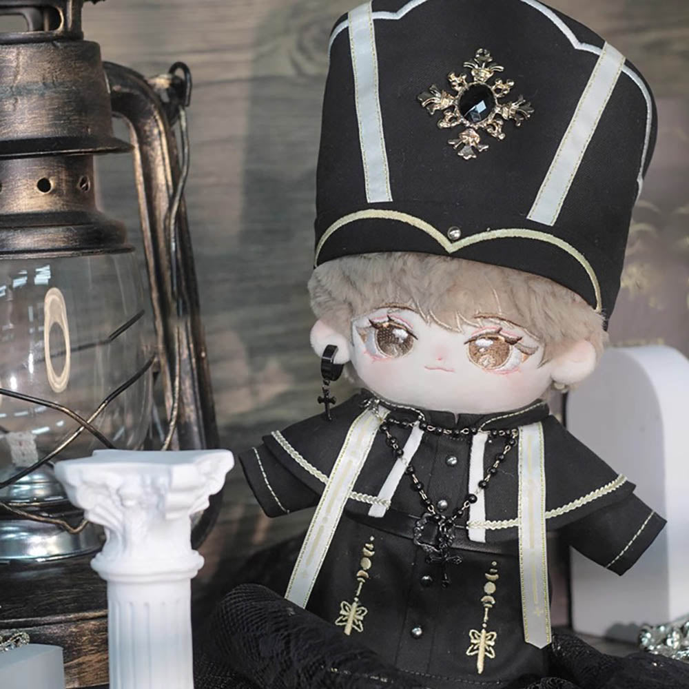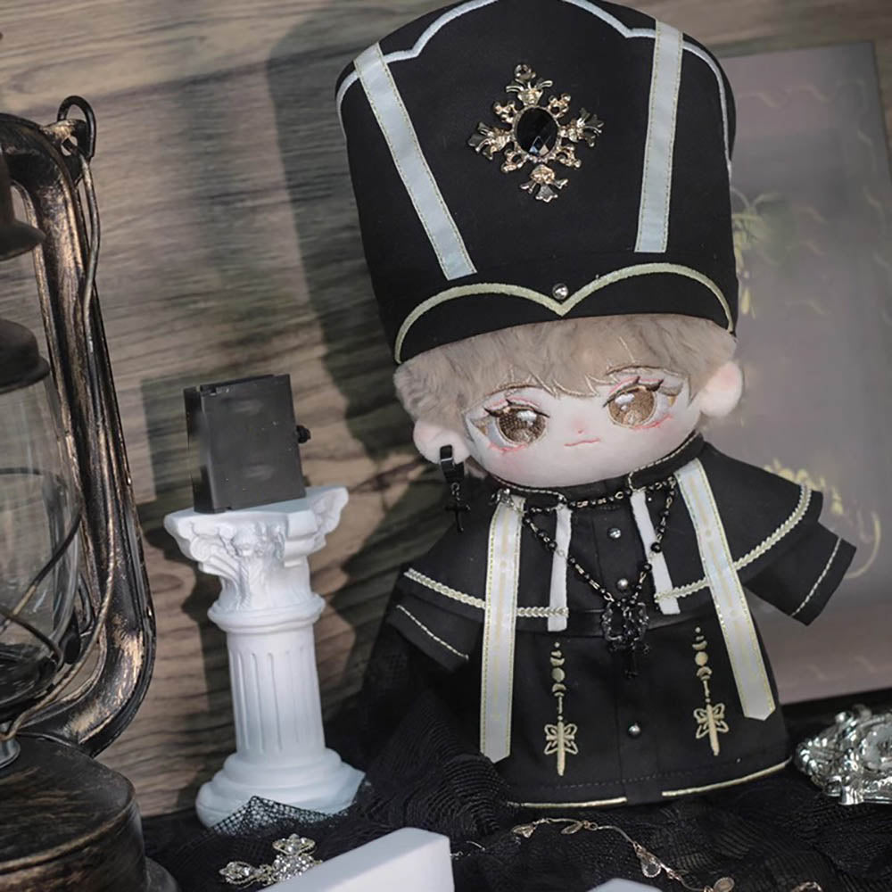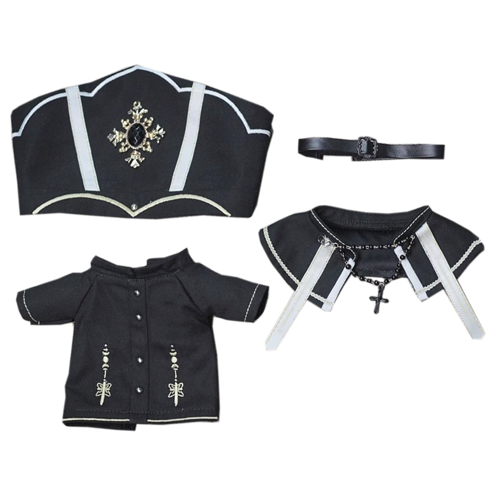 niannyyhouse 20cm Plush Doll Clothes Hat Robe Belt Cape Black Uniform Sets 8in Doll Dressup