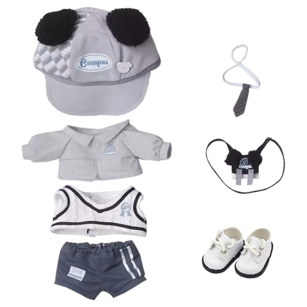 niannyyhouse 20cm Plush Doll Clothes Hat Shirt Tie Vest Pants Backpacks Shoes Puppy Outfit 8in Doll Dress Up