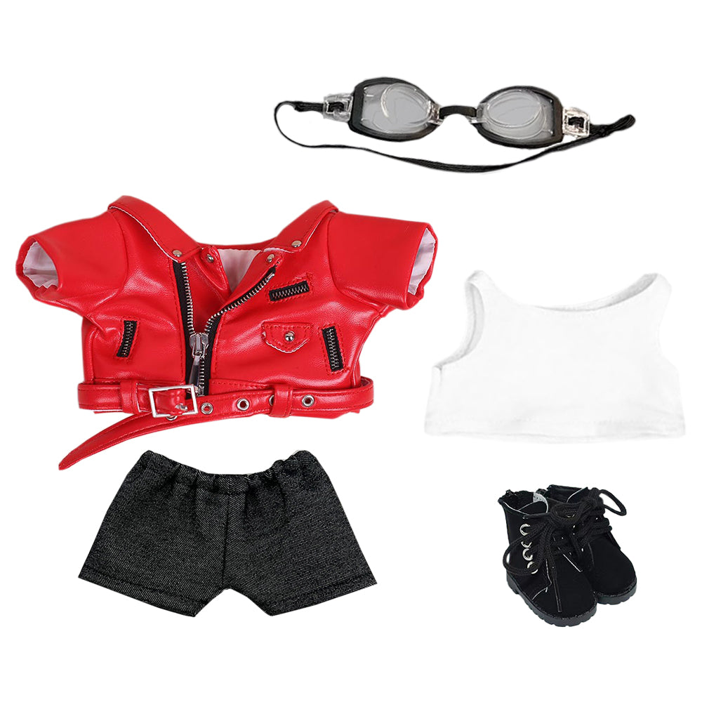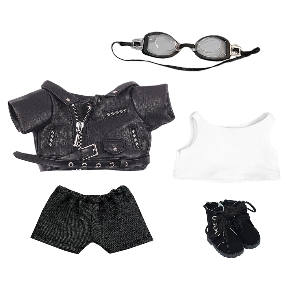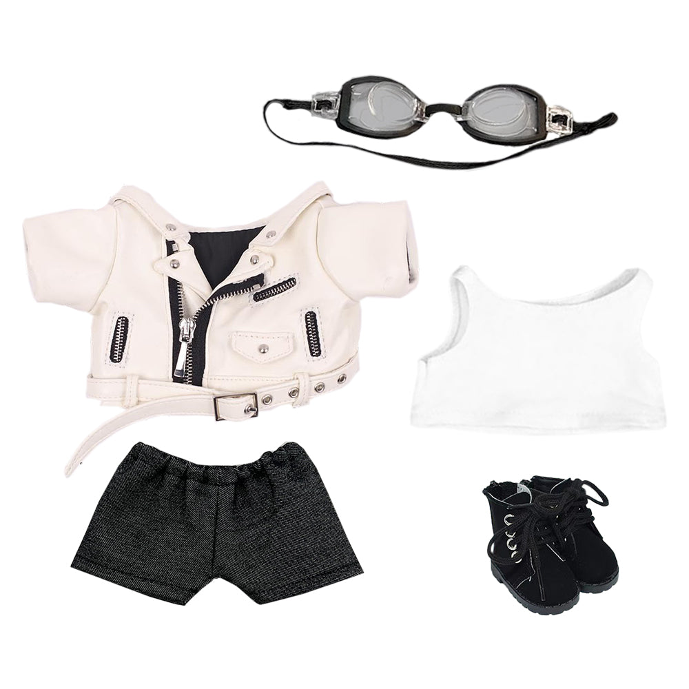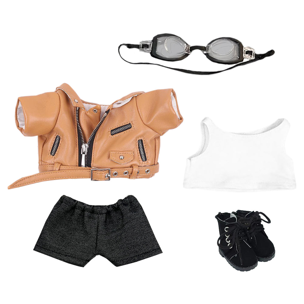 niannyyhouse 20cm Plush Doll Clothes Leather Coat Jeans Glasses Vest Shoes Jacket Outfit 8in Dolls Dress Up