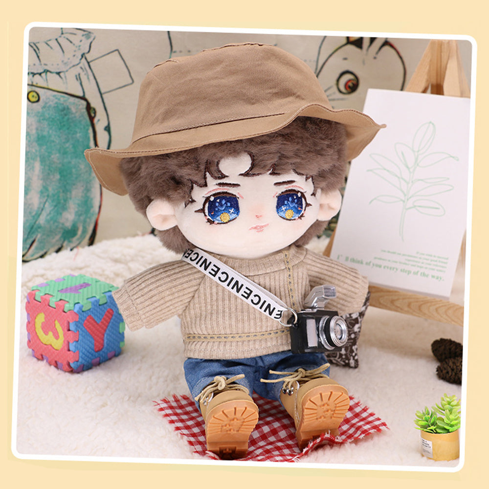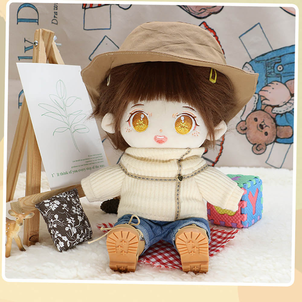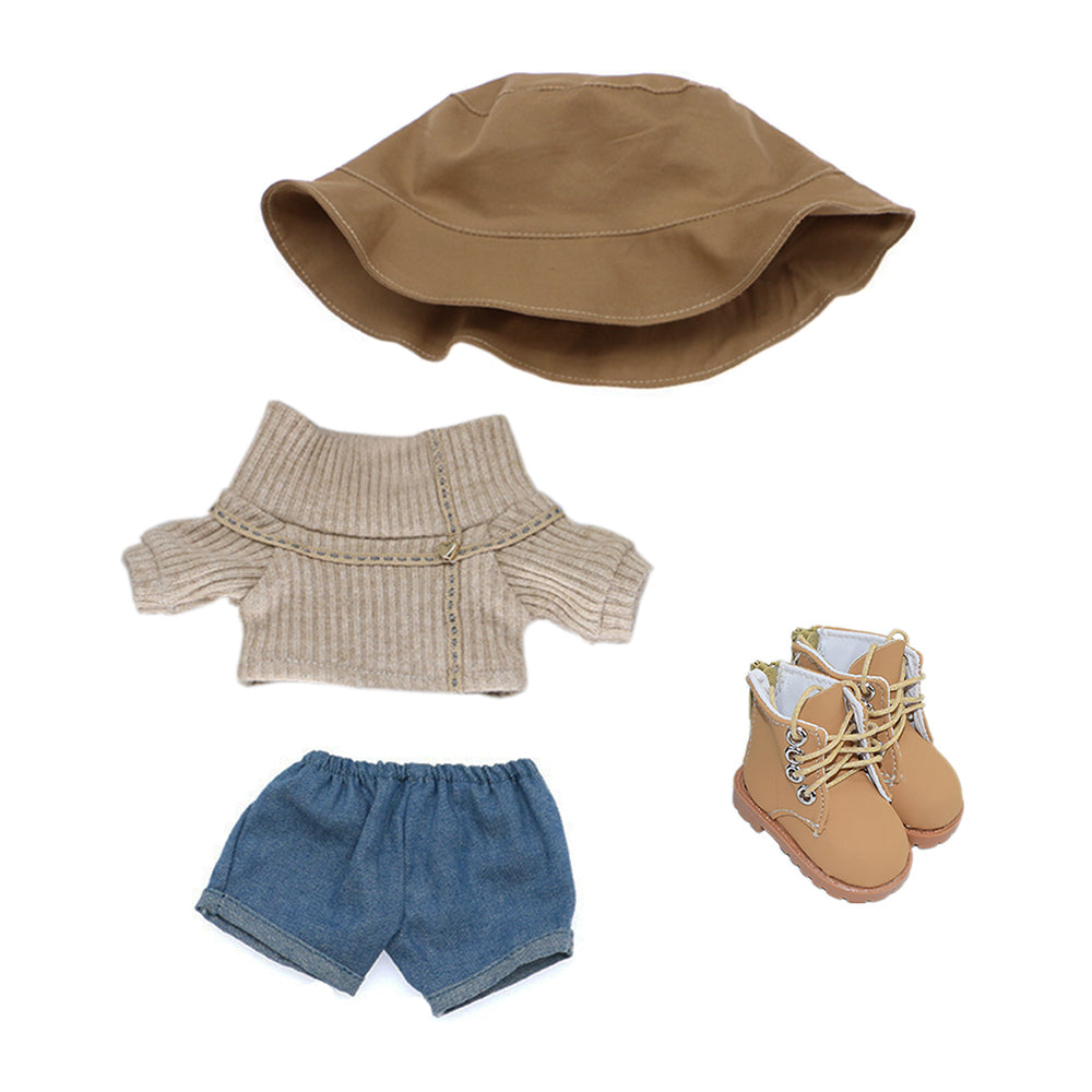 niannyyhouse 20cm Plushie Doll Clothes Travel Set Fisherman's Hat Low Neck Sweater Jeans Shoes 8in Doll Accessories