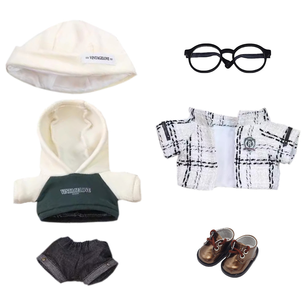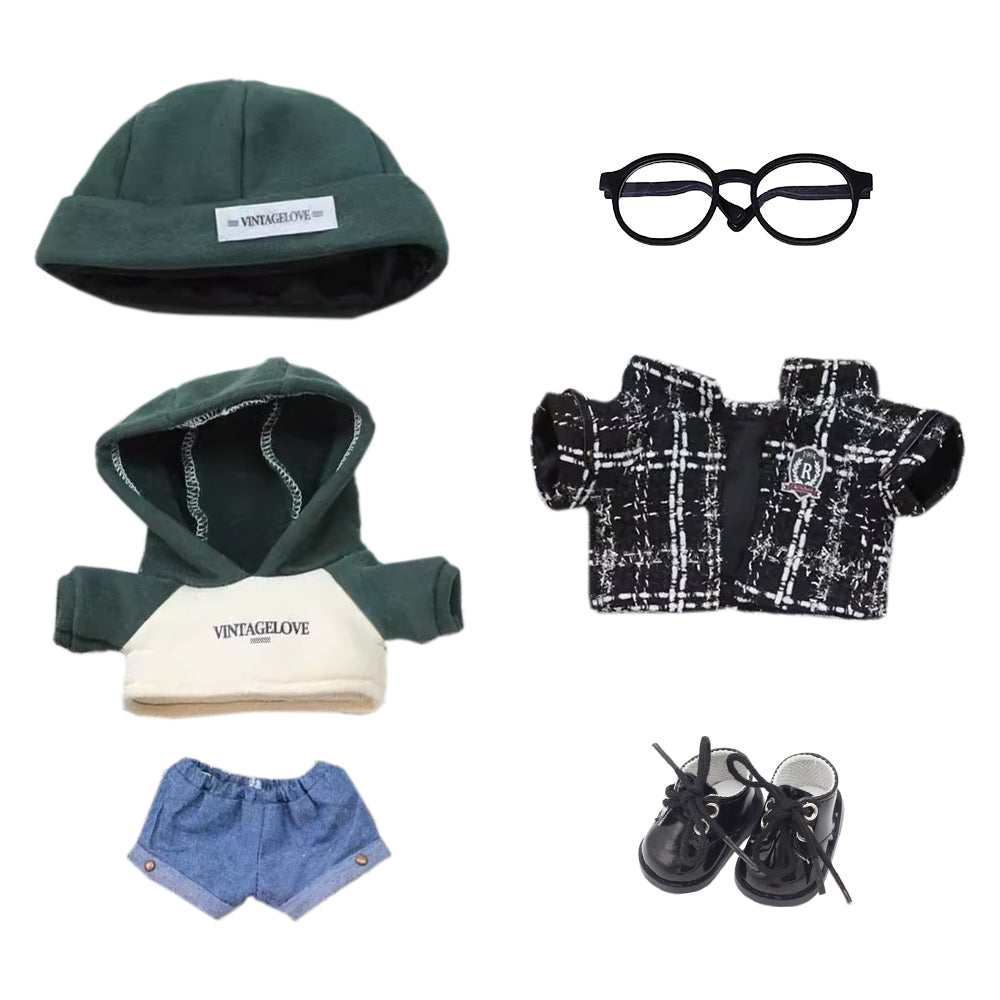 niannyyhouse 8in Doll Clothes Coat Hat Hoodie Jeans Glasses Leather Shoes Casual Outfit 20cm Plush Doll Accessories Dress Up